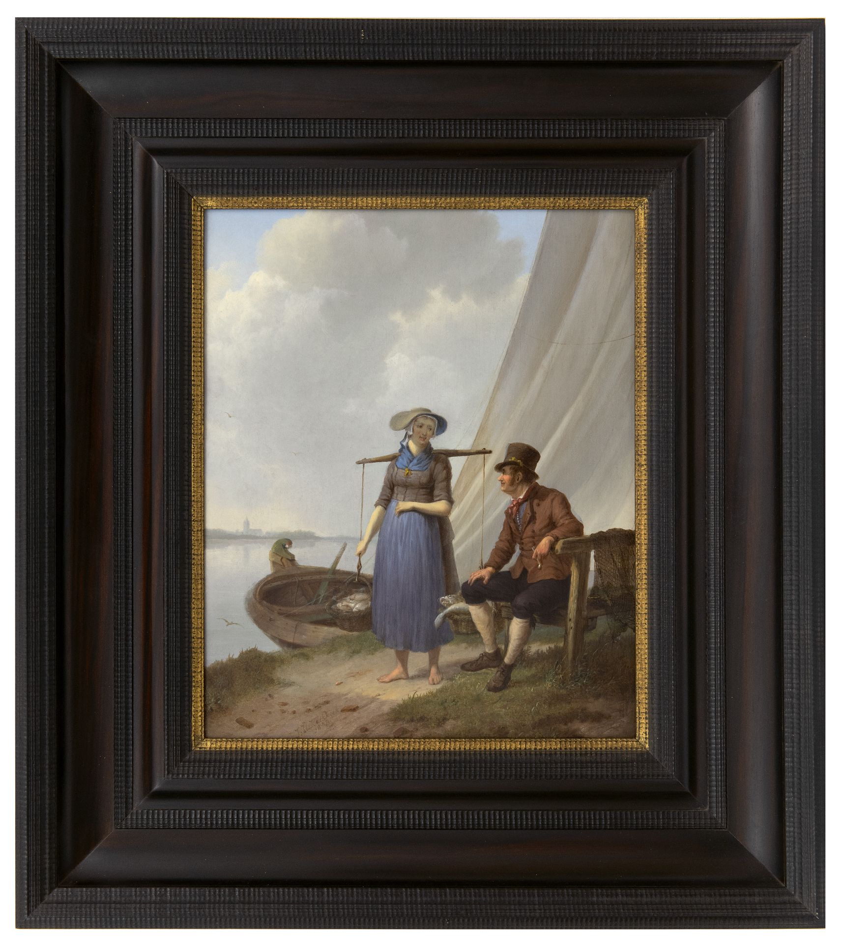 Johannes Hermanus Koekkoek kunstwerk • schilderij • te koop Een praatje langs de oever (tezamen met 10274)