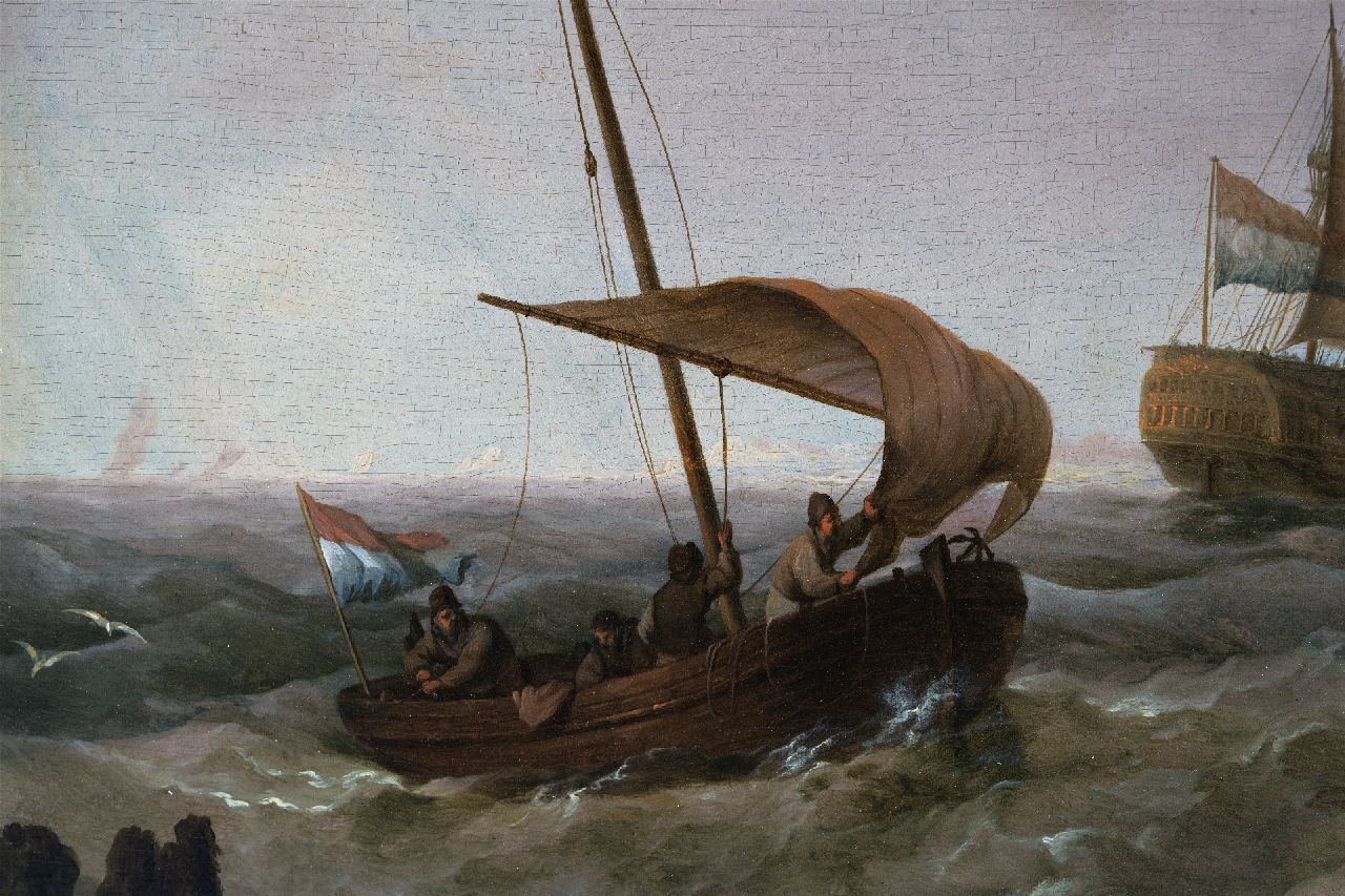 Johannes Hermanus Koekkoek kunstwerk • schilderij • te koop Engels oorlogsschip in de Zeeuwse wateren