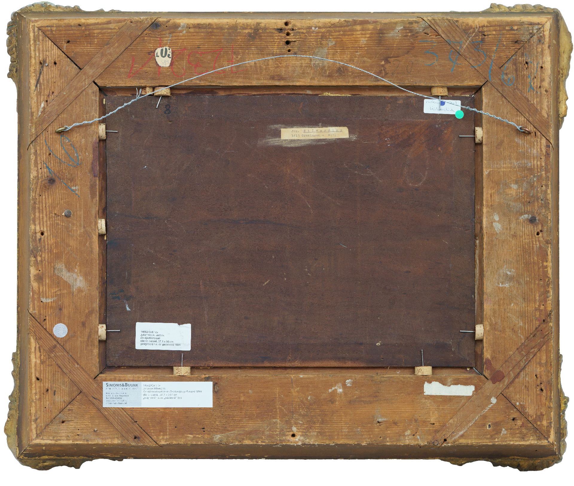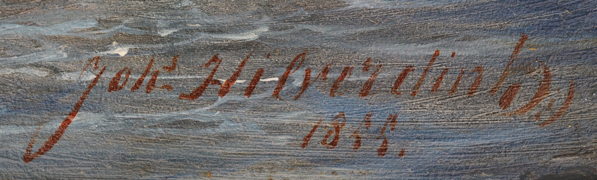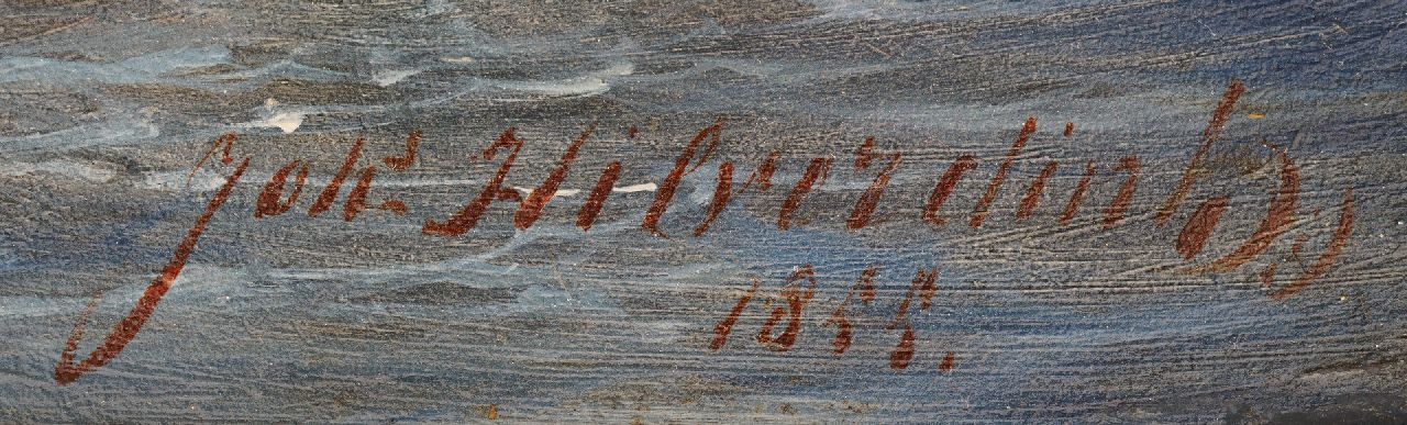 Johannes Hilverdink wordt in 1813 in Groningen geboren. Het gezin verhuist al snel naar Amsterdam, waar Johannes les krijgt van J.A. Daiwaille en zich vervolgens aanmeldt voor de Tekenacademie. Als schilder specialiseert hij zich daarna in romantische landschappen en zeegezichten. Dit schilderij uit 1855 heeft als onderwerp de dramatische dijkdoorbraak in de Grebbedijk tussen Rhenen en Wageningen van 5 maart 1855, waarbij een deel van de Gelderse vallei (o.a.Veenendaal) onder water kwam te staan. De watersnoodramp ontstond na een strenge winter toen de Nederlandse rivieren nog bevroren waren en het water uit Duitsland niet weg kon. Het ijs begon te kruien en de dijken bezweken. Het gat in de Grebbedijk was 150 meter breed. Op het schilderij van Hilverdink zien we de verwoestende kracht van water en kruiend ijs, op de achtergrond de kerktoren van het dorp Opheusden. Leden van de kunstenaarsvereniging Arti et Amicitiae maakten een album met litho's die te vinden is in de collectie van de Atlas van Stolk te Rotterdam.