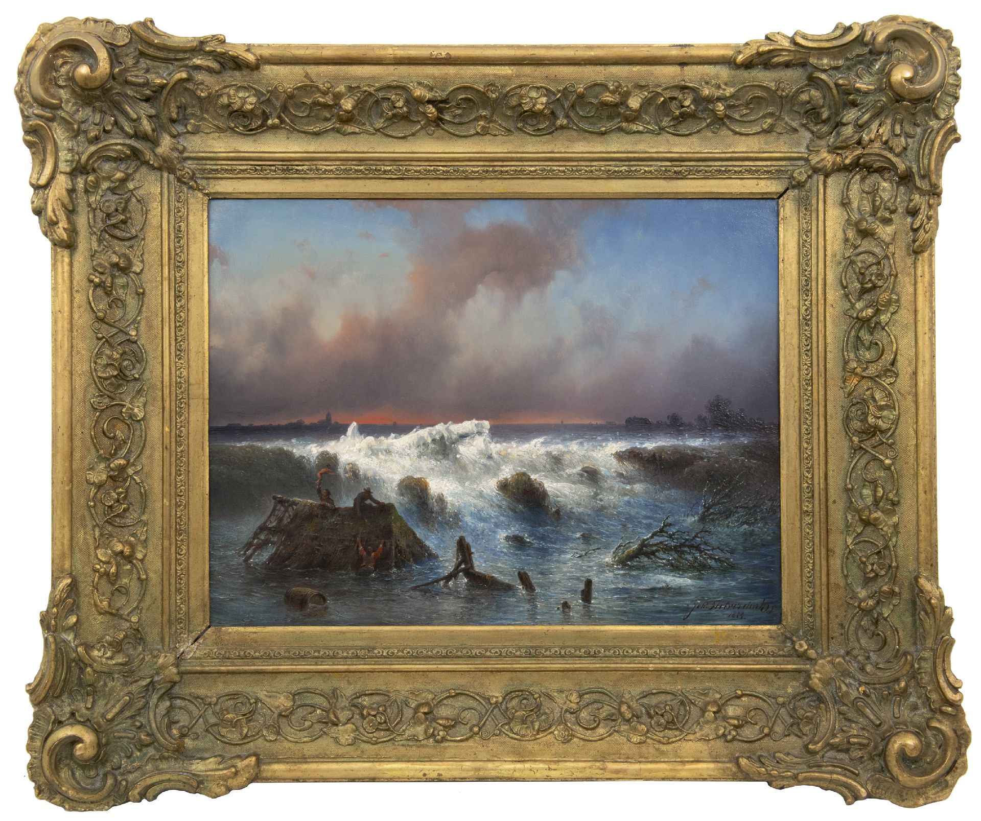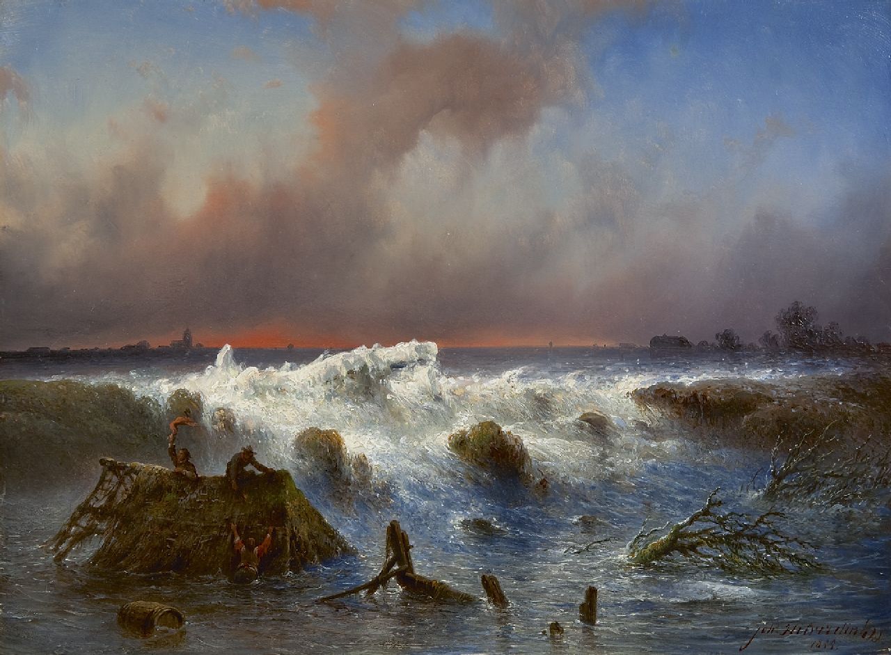 Johannes Hilverdink kunstwerk • schilderij • te koop De dijkdoorbraak in de Grebbedijk op 5 maart 1855