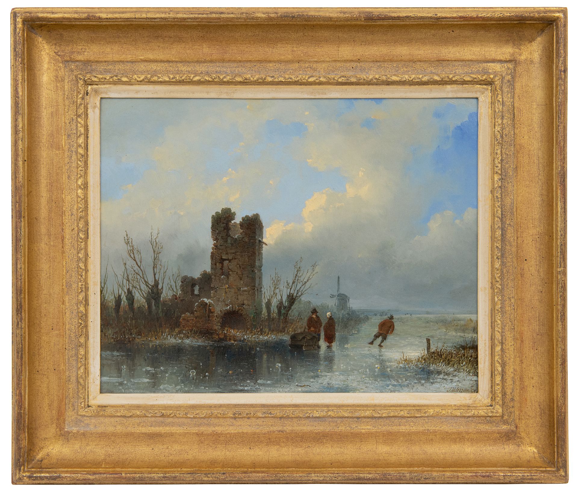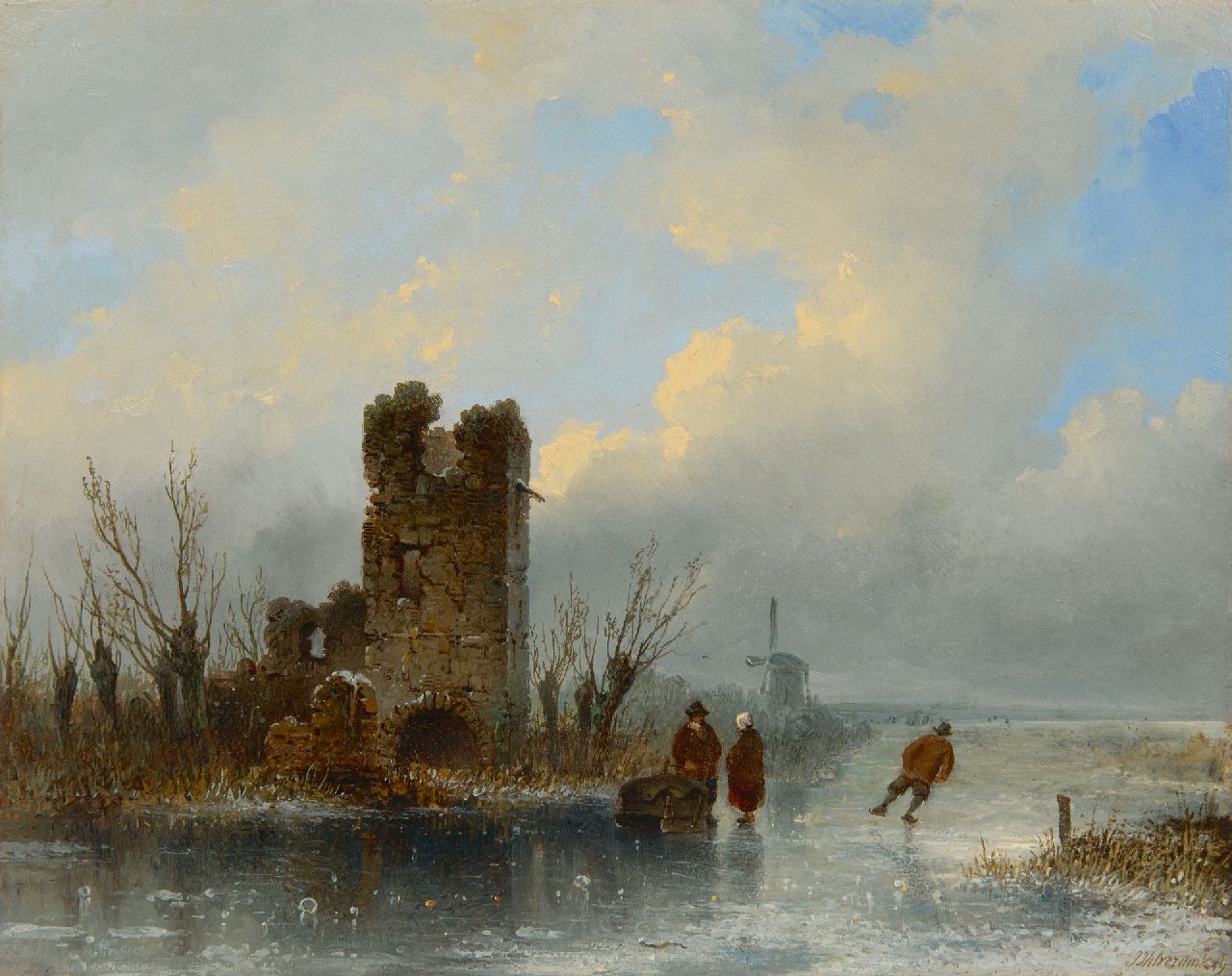Johannes Hilverdink kunstwerk • schilderij • voorheen te koop Een winterdag op het ijs
