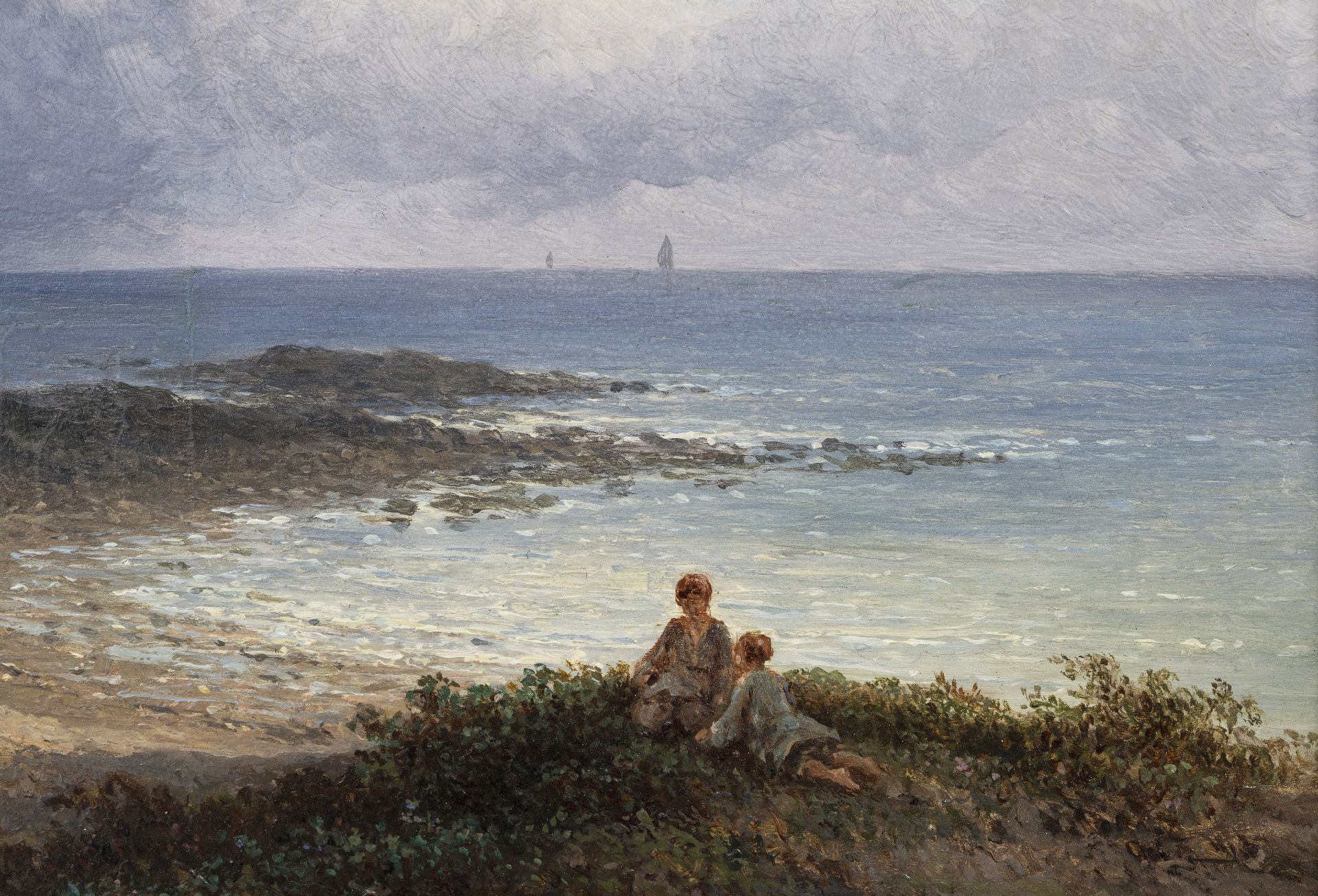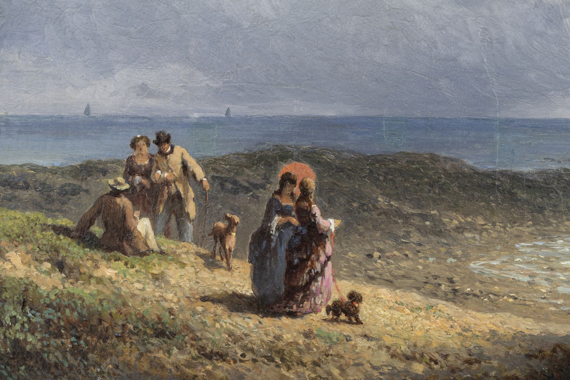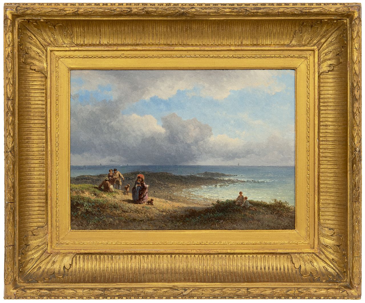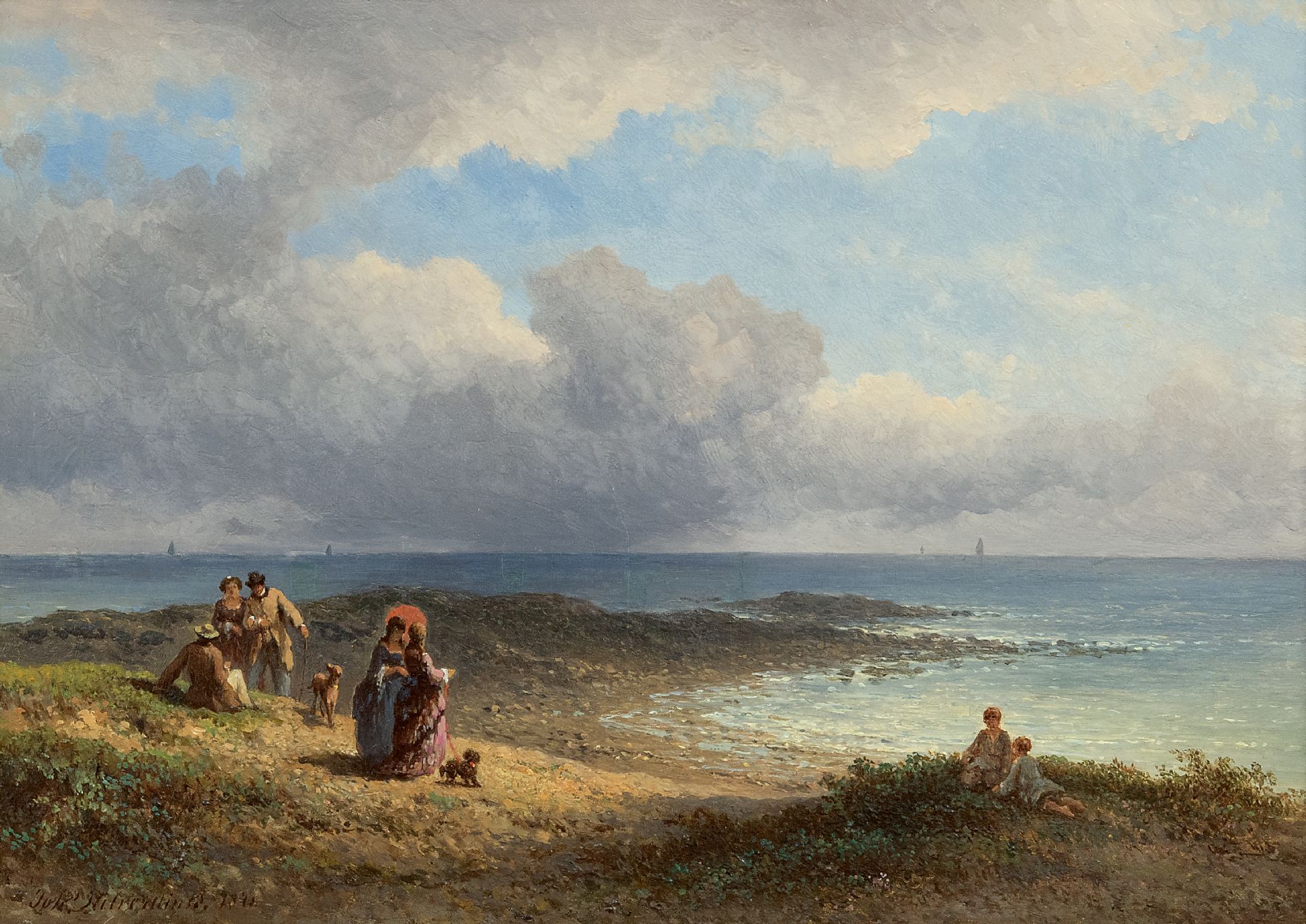 Johannes Hilverdink kunstwerk • schilderij • te koop Elegante wandelaars aan de Franse kust