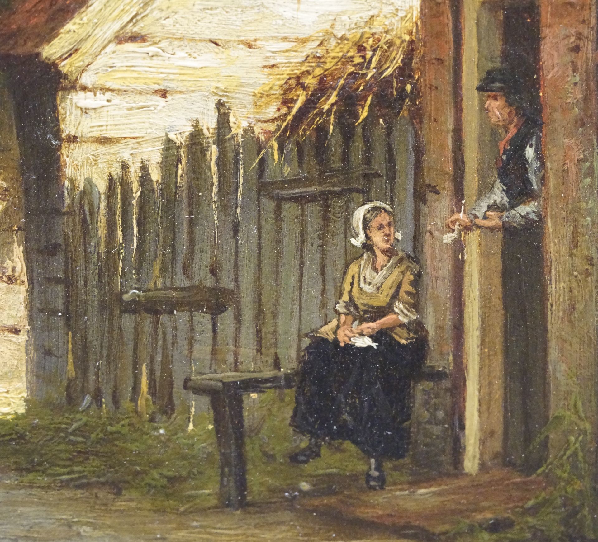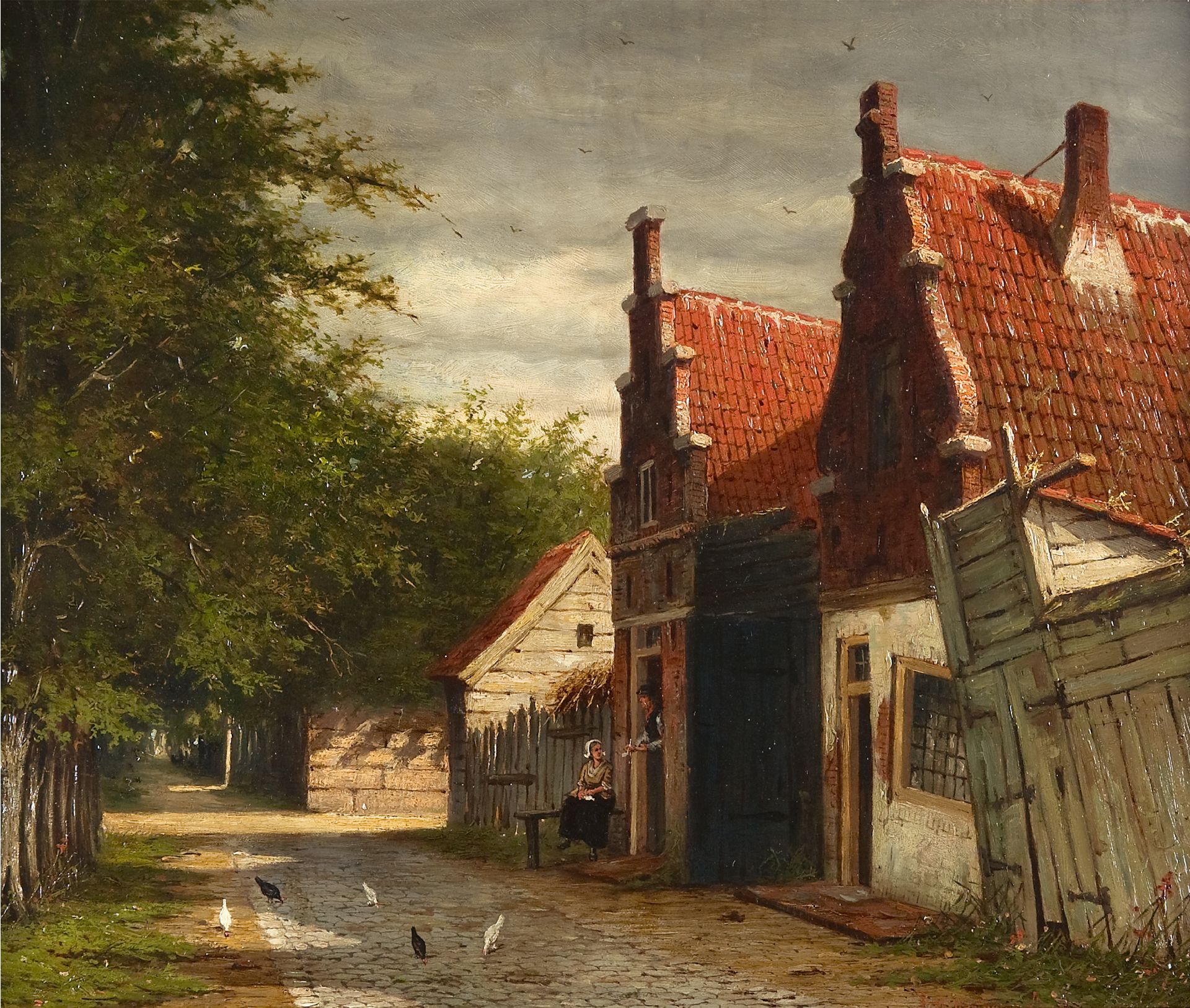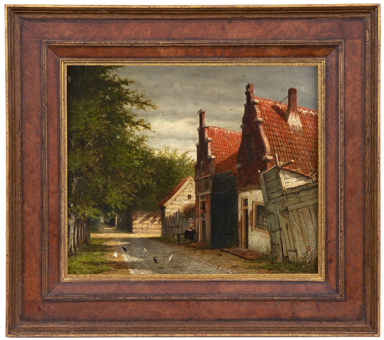 Johannes Jacobus Mittertreiner kunstwerk • schilderij • voorheen te koop Dorpsstraat met figuren in een deuropening