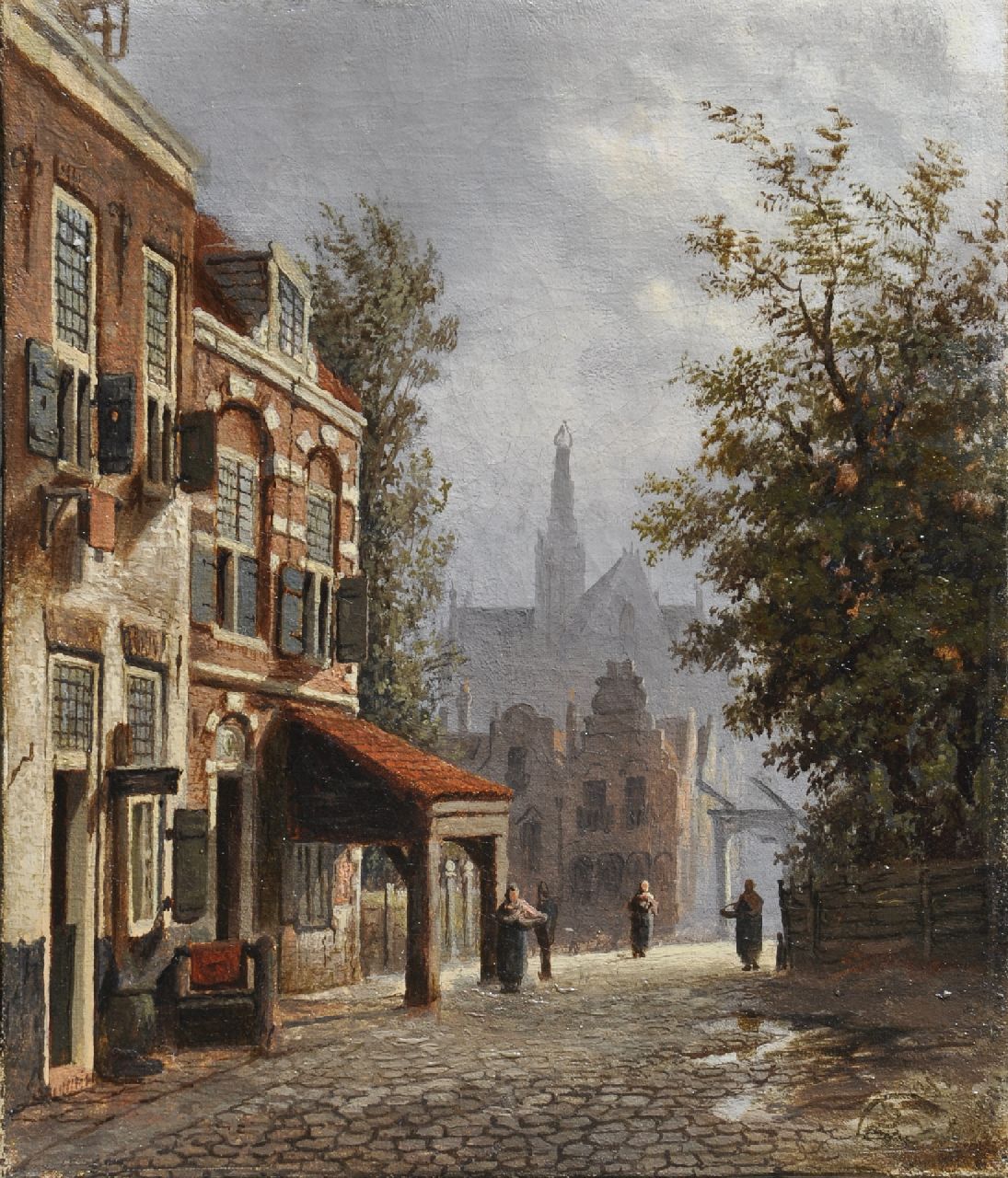 Johannes Jacobus Mittertreiner kunstwerk • schilderij • voorheen te koop Zonnig straatje