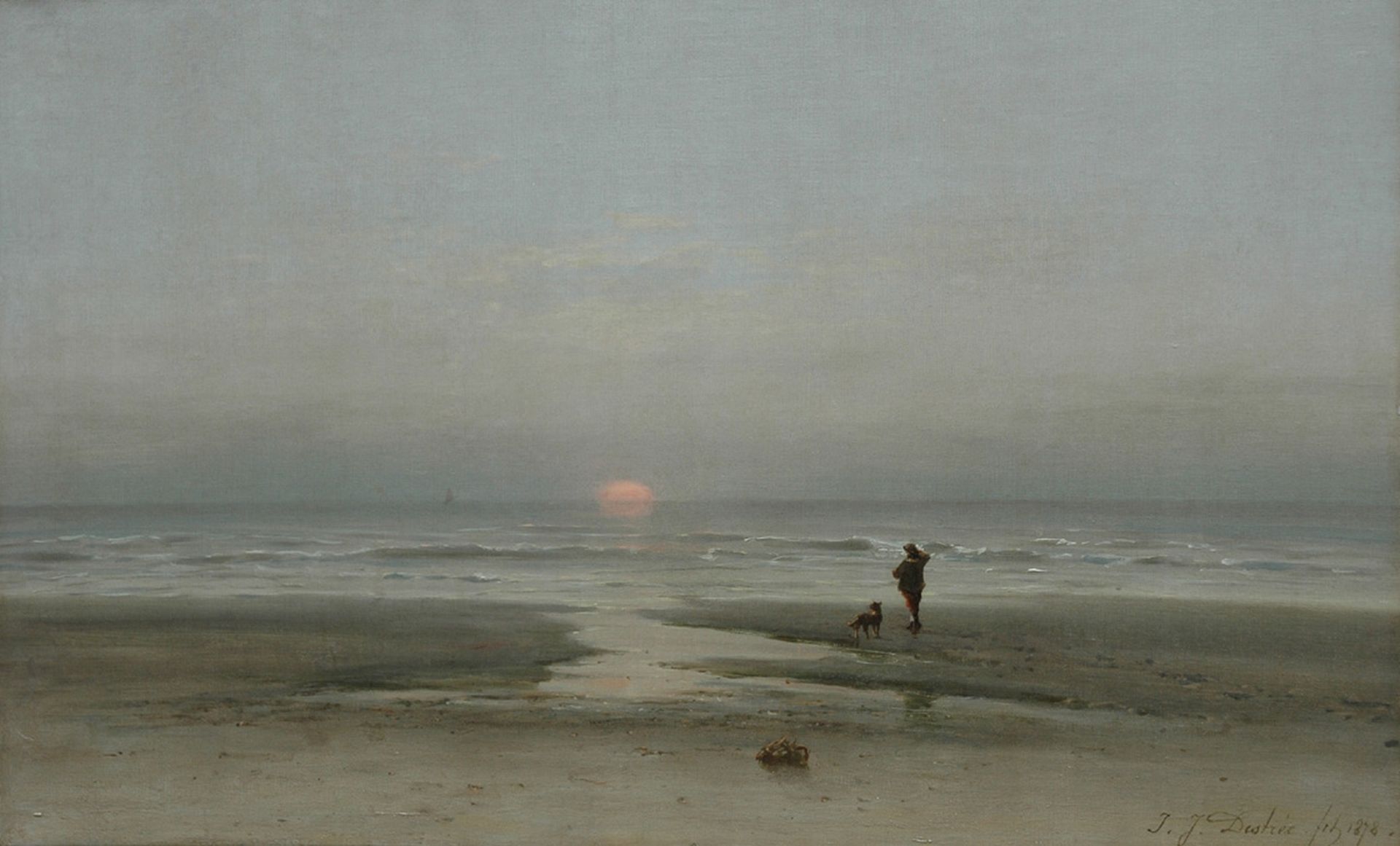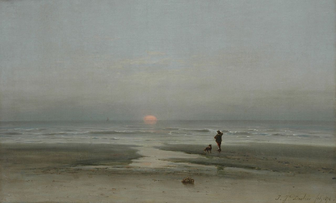 Johannes Josephus Destrée kunstwerk • schilderij • voorheen te koop Bij zonsondergang op het strand