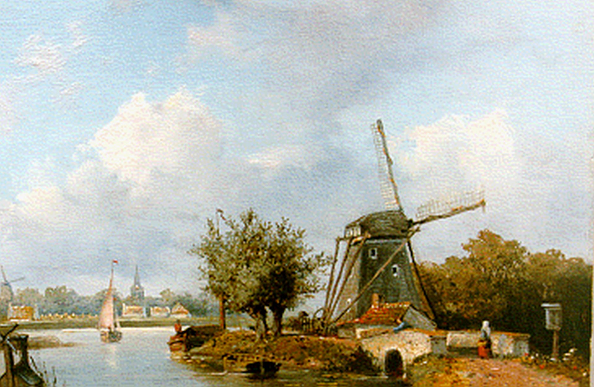 Johannes Josephus Destrée kunstwerk • schilderij • voorheen te koop Rivierlandschap met figuren
