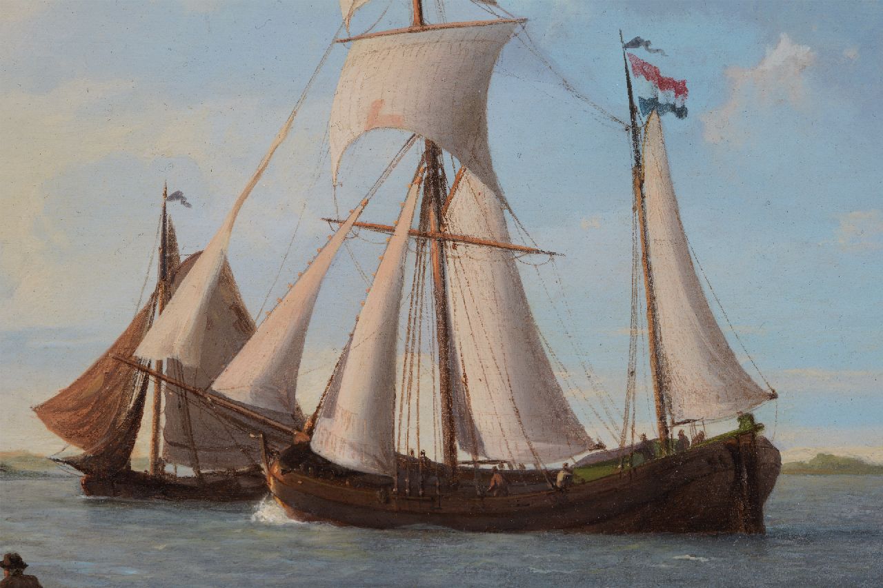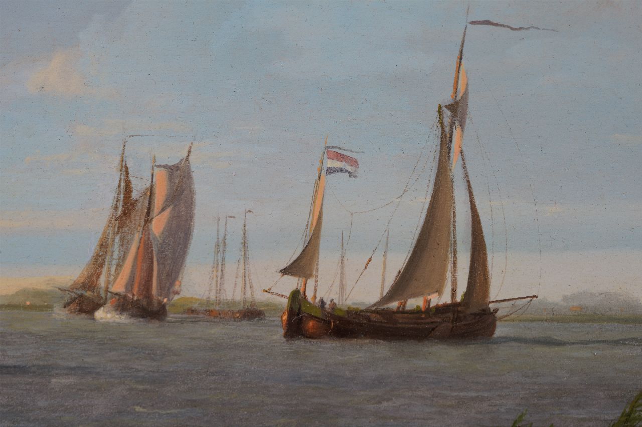 Johannes Koekkoek kunstwerk • schilderij • te koop Laverende zeilschepen op Hollands binnenwater