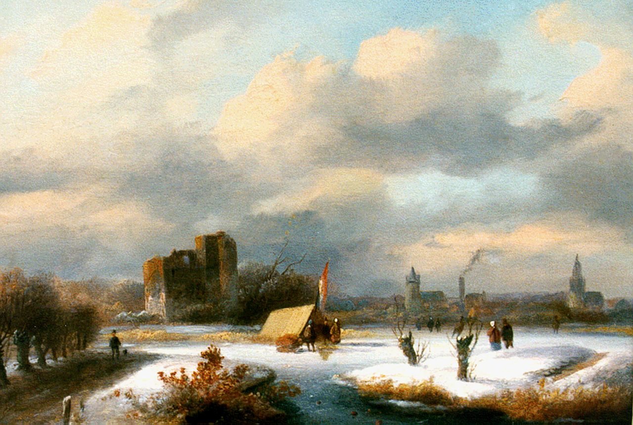Johannes Petrus van Velzen kunstwerk • schilderij • voorheen te koop Winterlandschap met schaatsers