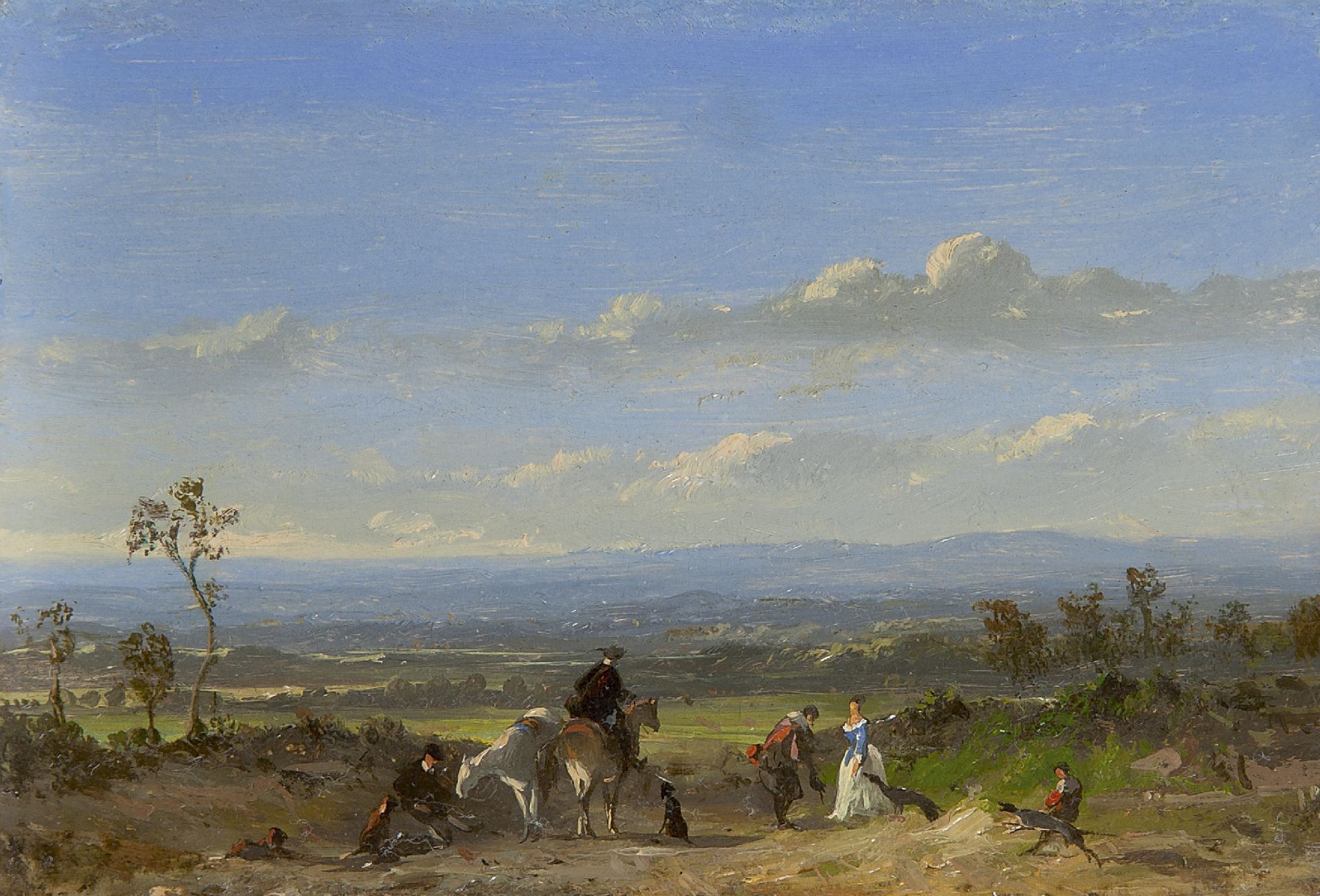 Johannes Tavenraat kunstwerk • schilderij • voorheen te koop Jachtgezelschap in weids landschap