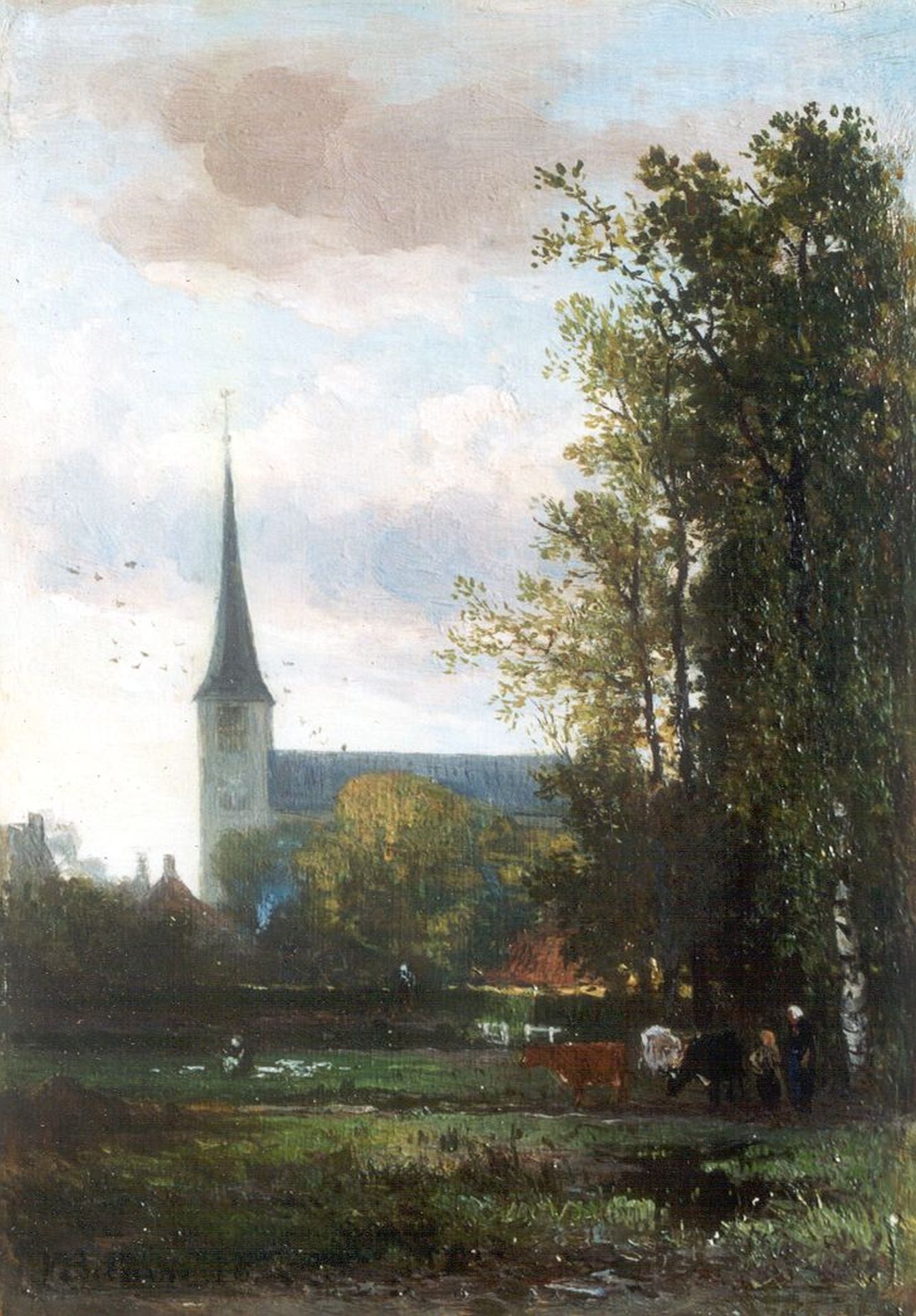 Johannes Warnardus Bilders kunstwerk • schilderij • voorheen te koop Gezicht op de Dorpskerk, Vorden