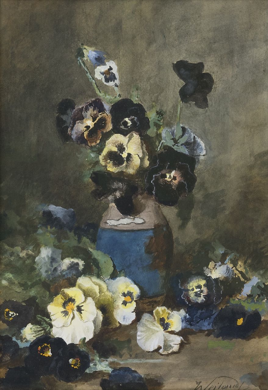 Johannes Weiland kunstwerk • aquarel • tekening • te koop Violen