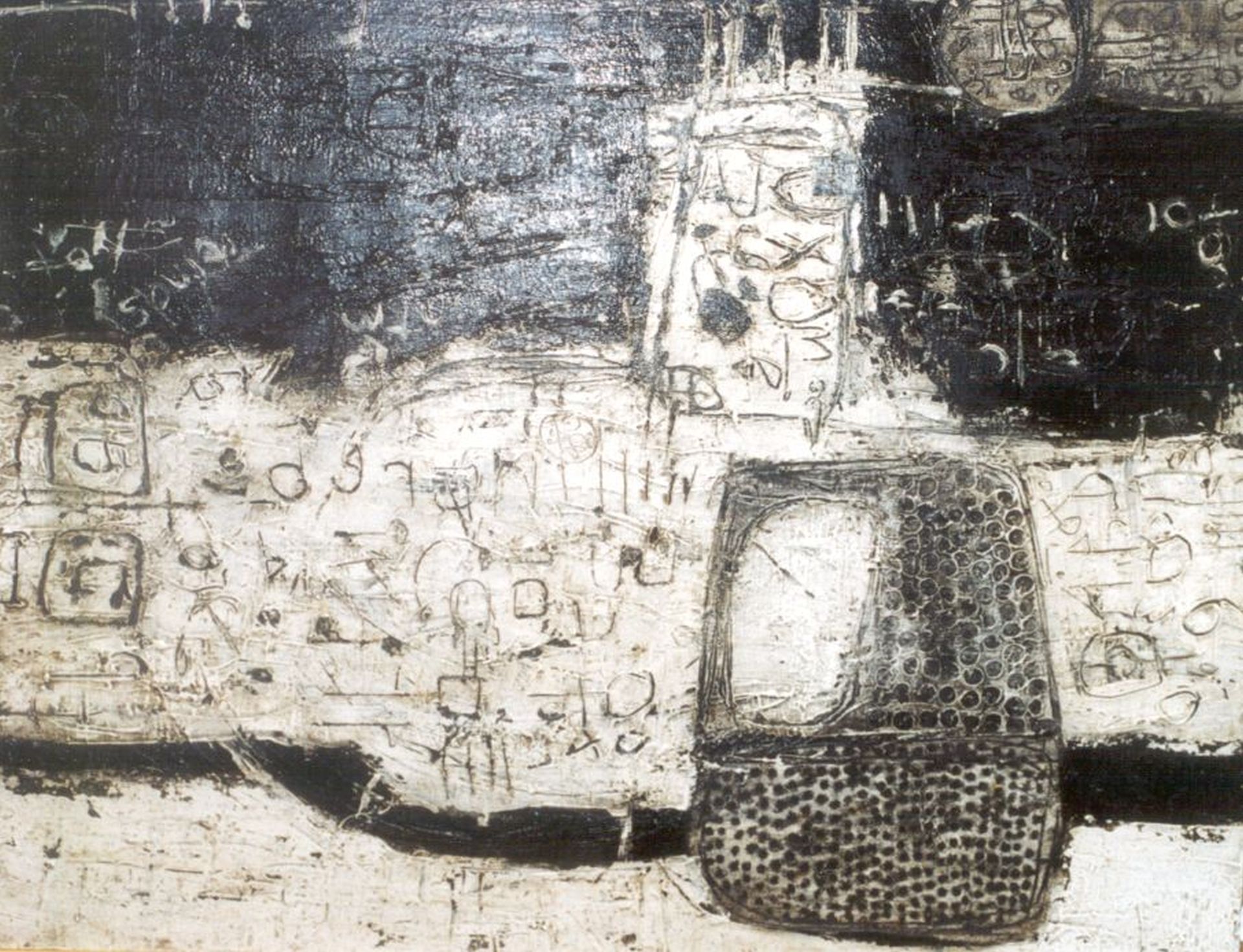 olieverf op doek 92,2 x 73,2 cm, gesigneerd verso en verso gedateerd 1961