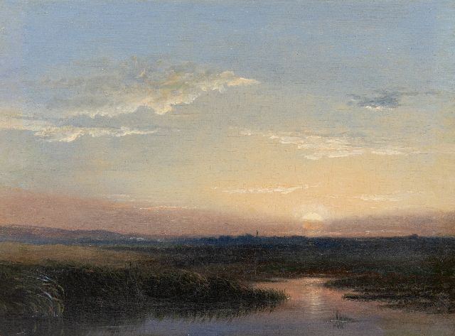 John Franciscus Hoppenbrouwers kunstwerk • schilderij • voorheen te koop Avondstemming met visser