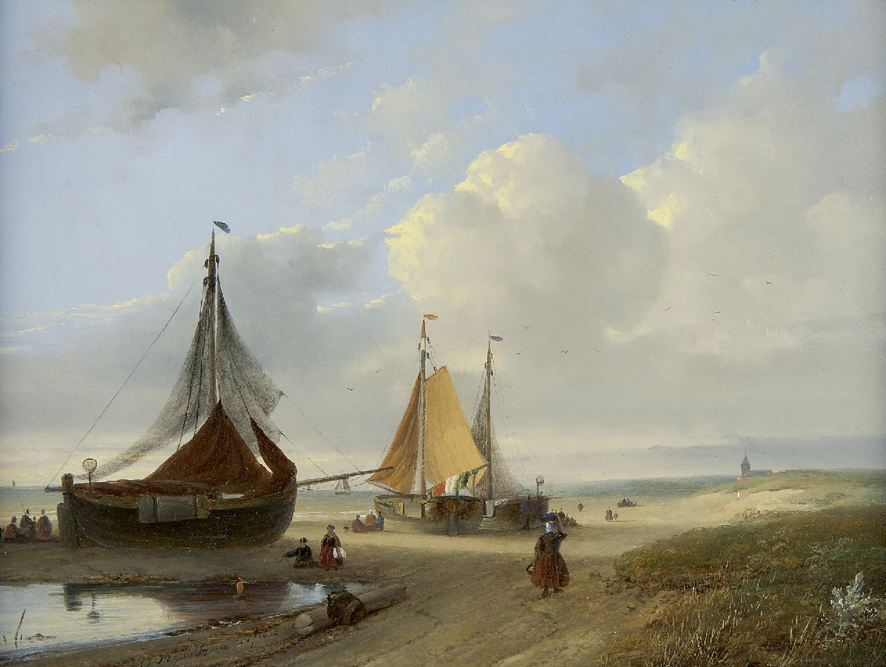 John Franciscus Hoppenbrouwers kunstwerk • schilderij • voorheen te koop Bomschuiten op het strand