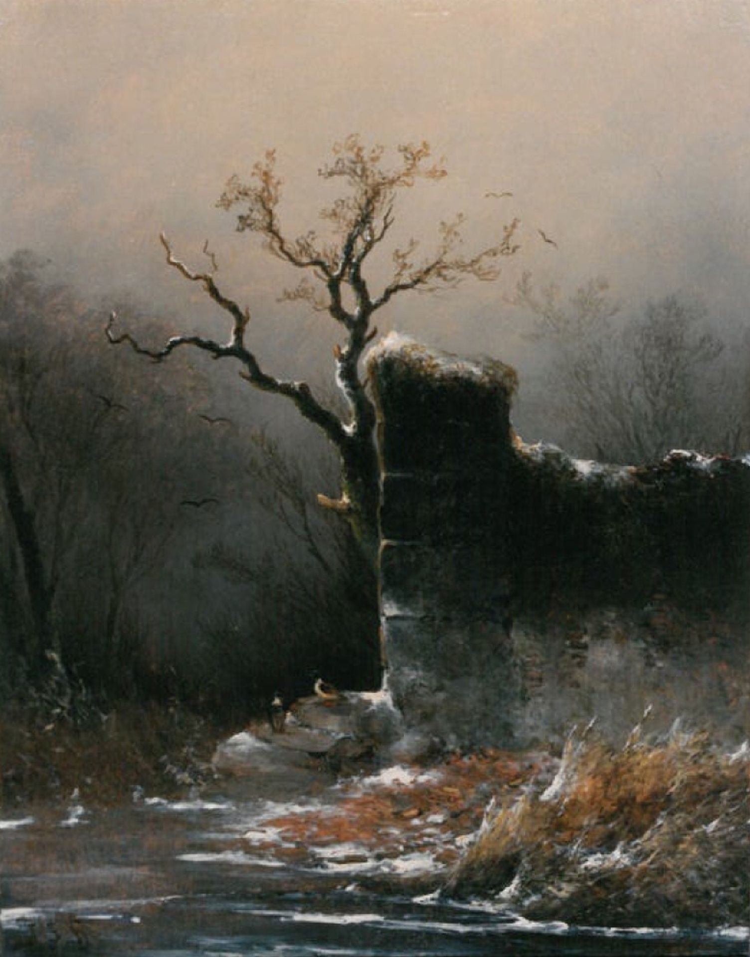 John Franciscus Hoppenbrouwers kunstwerk • schilderij • voorheen te koop Winterlandschap met ruine
