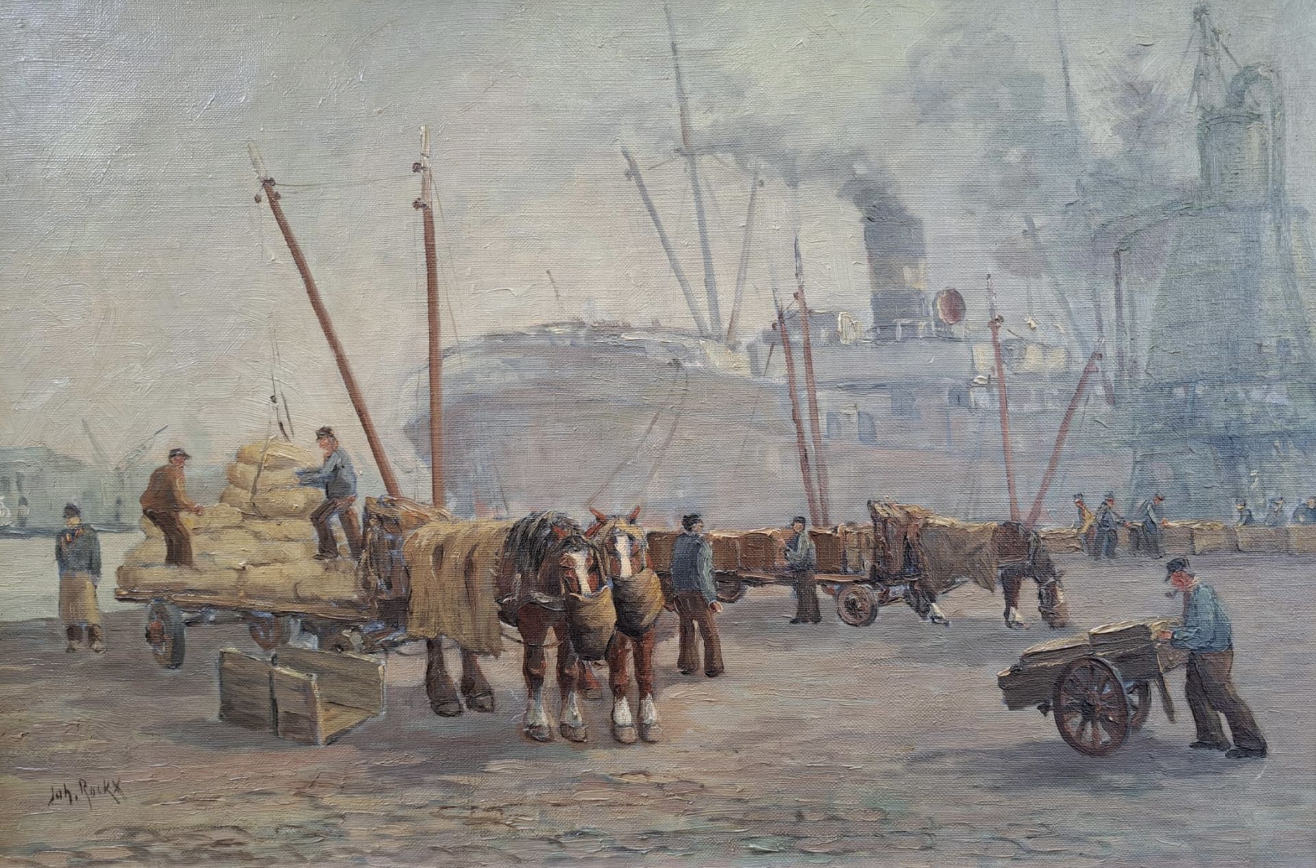 John Rockx kunstwerk • schilderij • te koop Bedrijvigheid in de haven