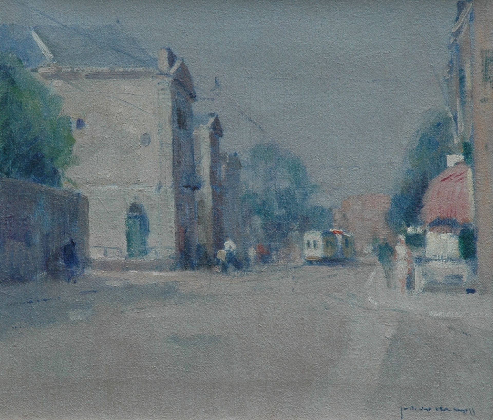 Joop Kropff kunstwerk • schilderij • voorheen te koop Gezicht op het Korte Voorhout in Den Haag
