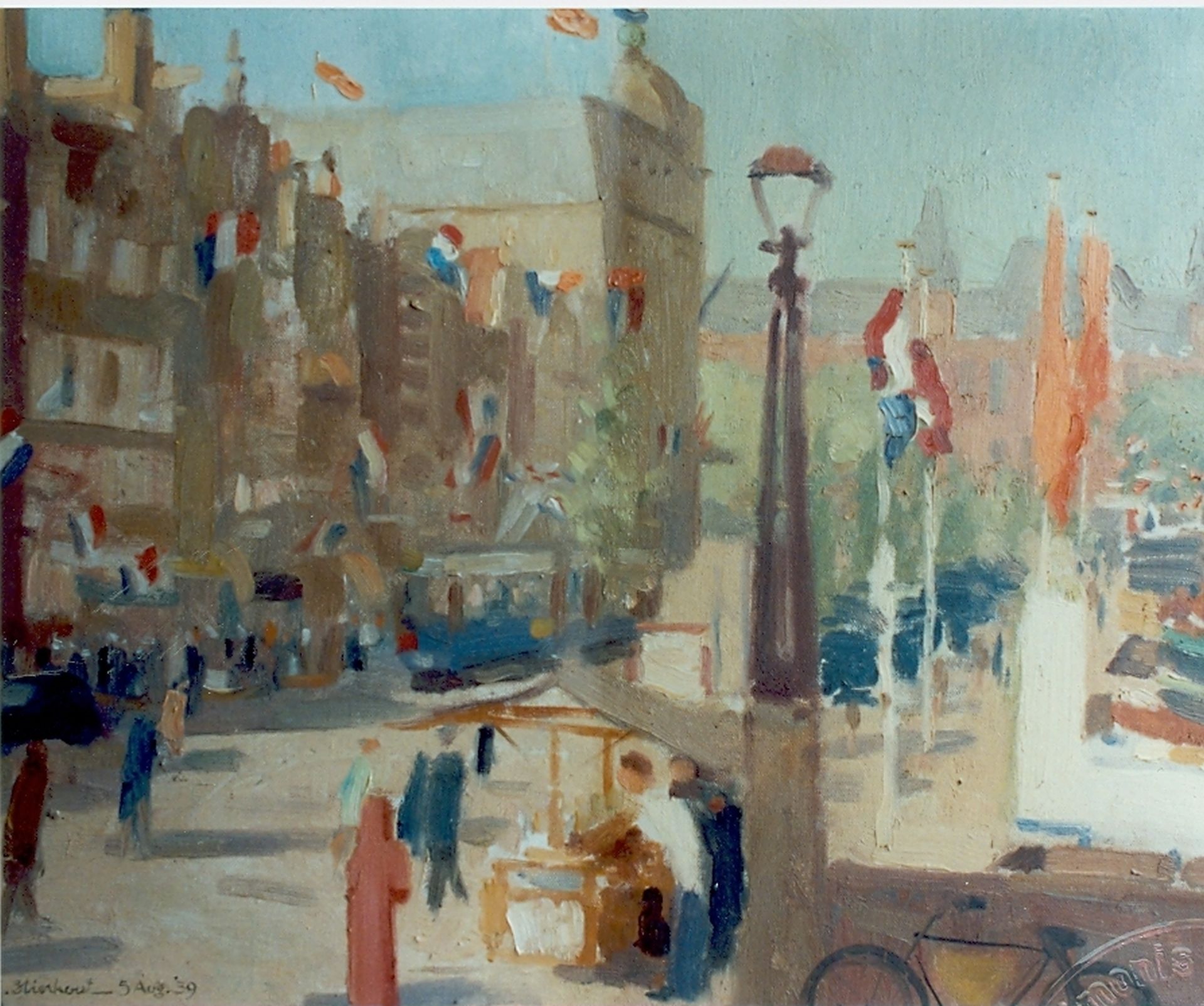 Joop Stierhout kunstwerk • schilderij • voorheen te koop Oranjefeest in Amsterdam