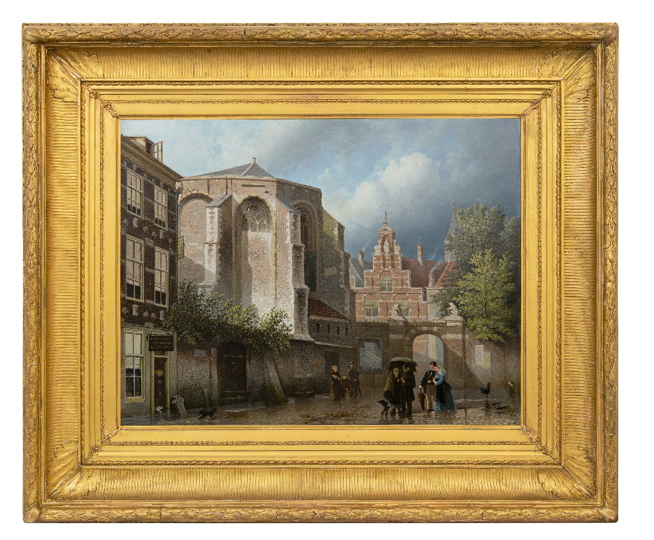 Joseph Bles kunstwerk • schilderij • te koop Regen en zonneschijn op een kerkplein