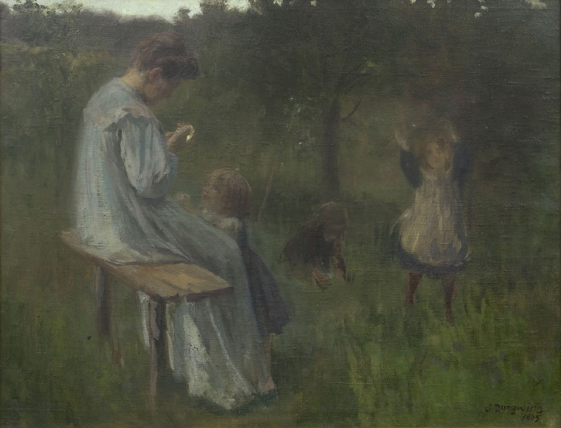Joseph Jungwirth kunstwerk • schilderij • voorheen te koop Moeder met spelende kinderen
