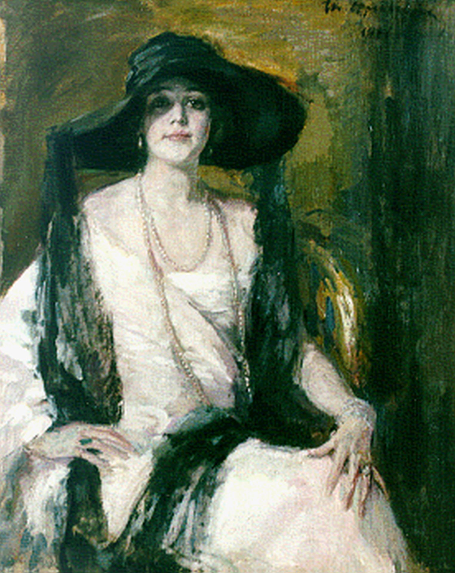 Joseph Oppenheimer kunstwerk • schilderij • voorheen te koop Elegante vrouw met modieuze hoed