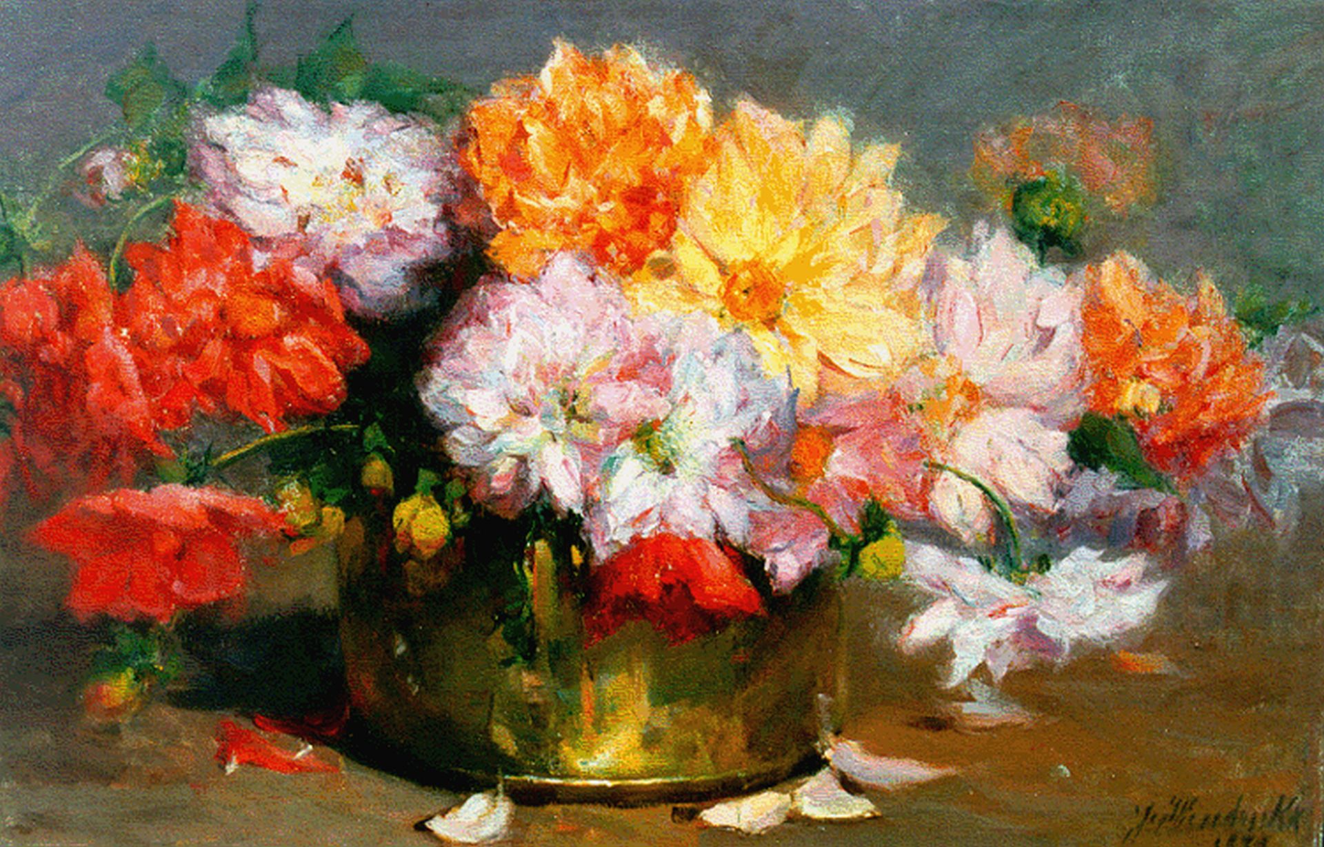 Josephina Hendrickx kunstwerk • schilderij • voorheen te koop Bloemstilleven met dahlia's