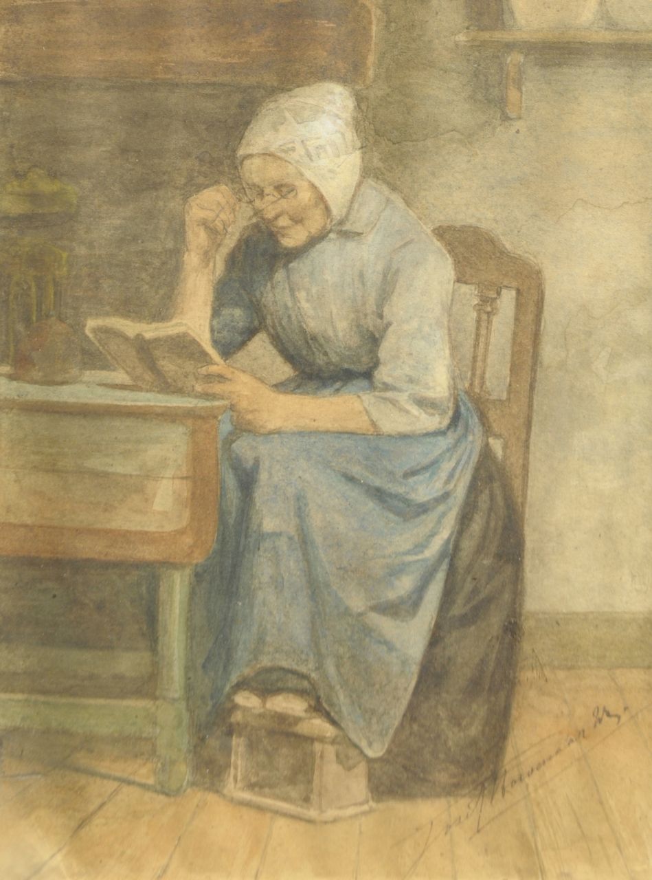 Jozef Hoevenaar kunstwerk • aquarel • tekening • voorheen te koop Lezende vrouw