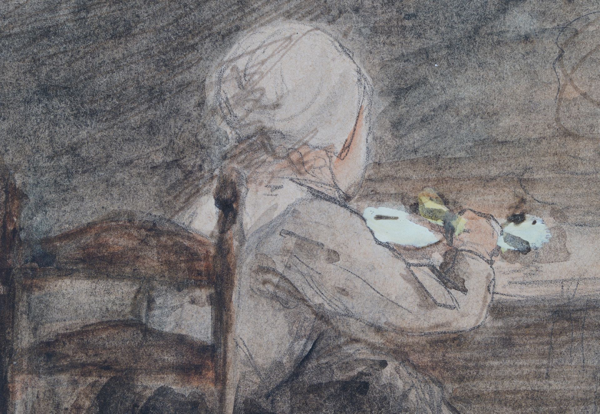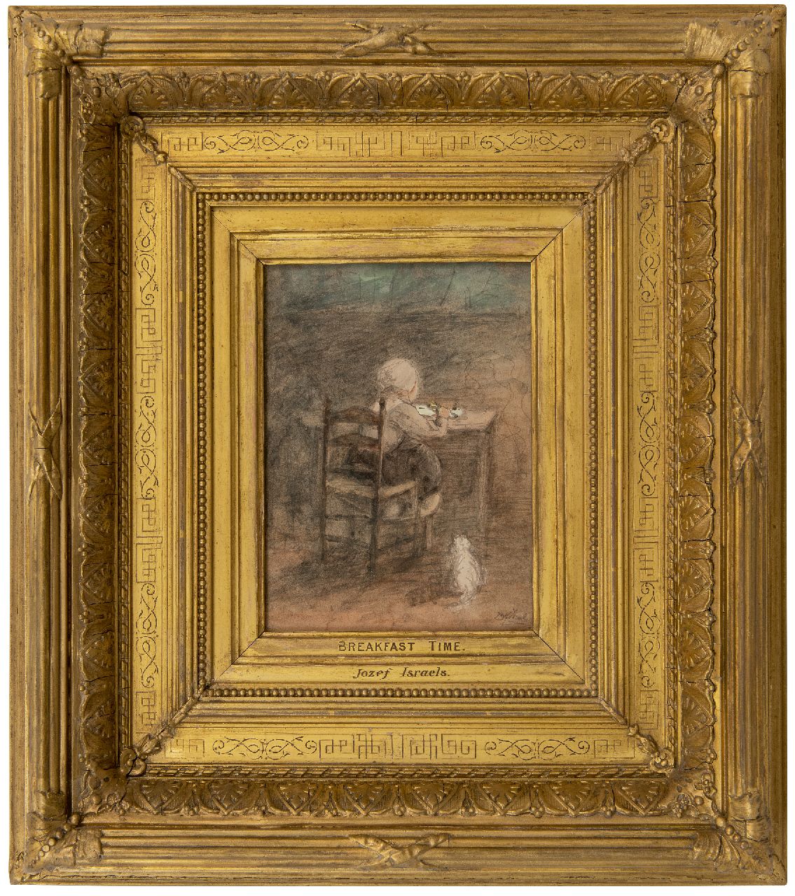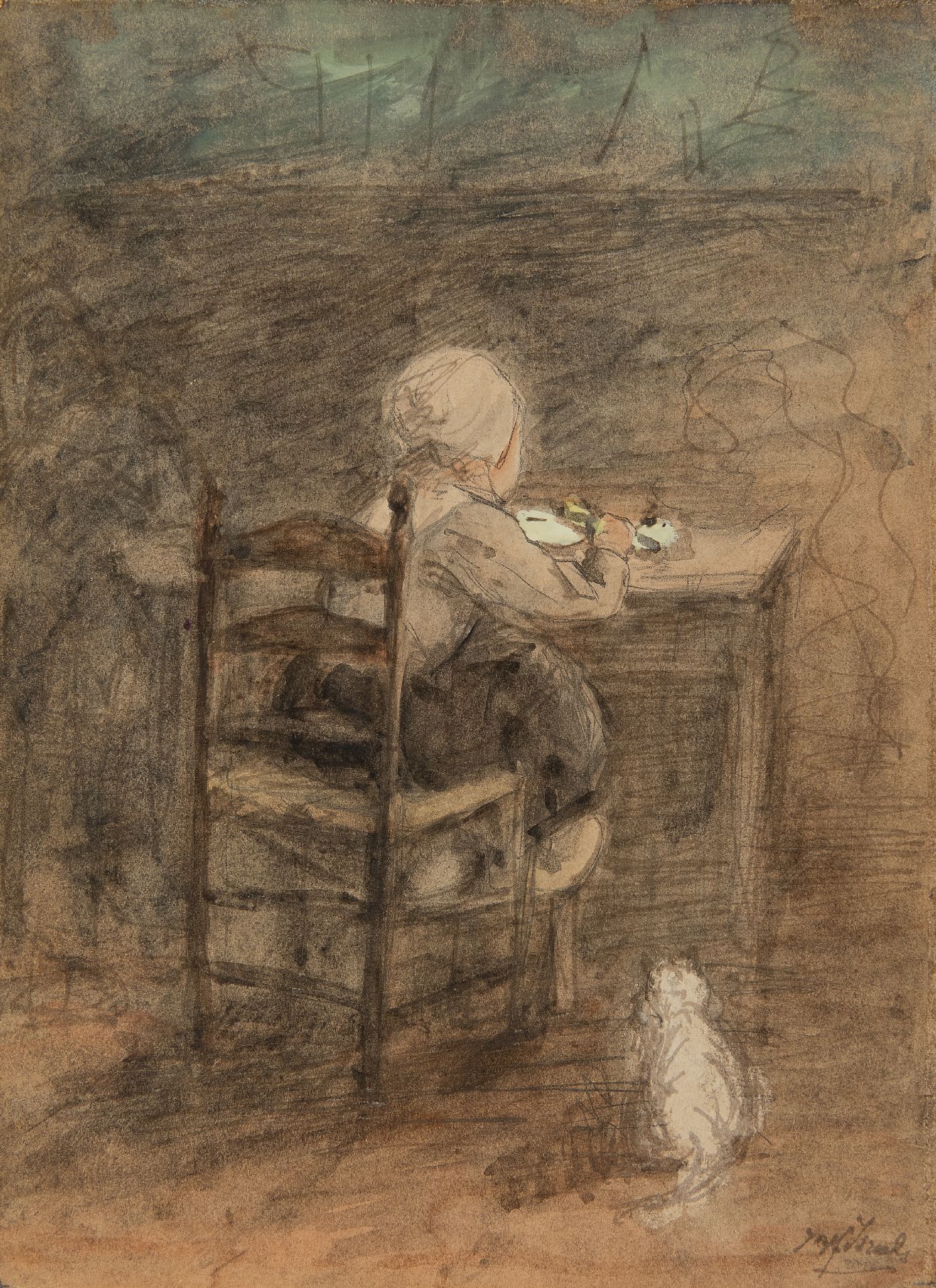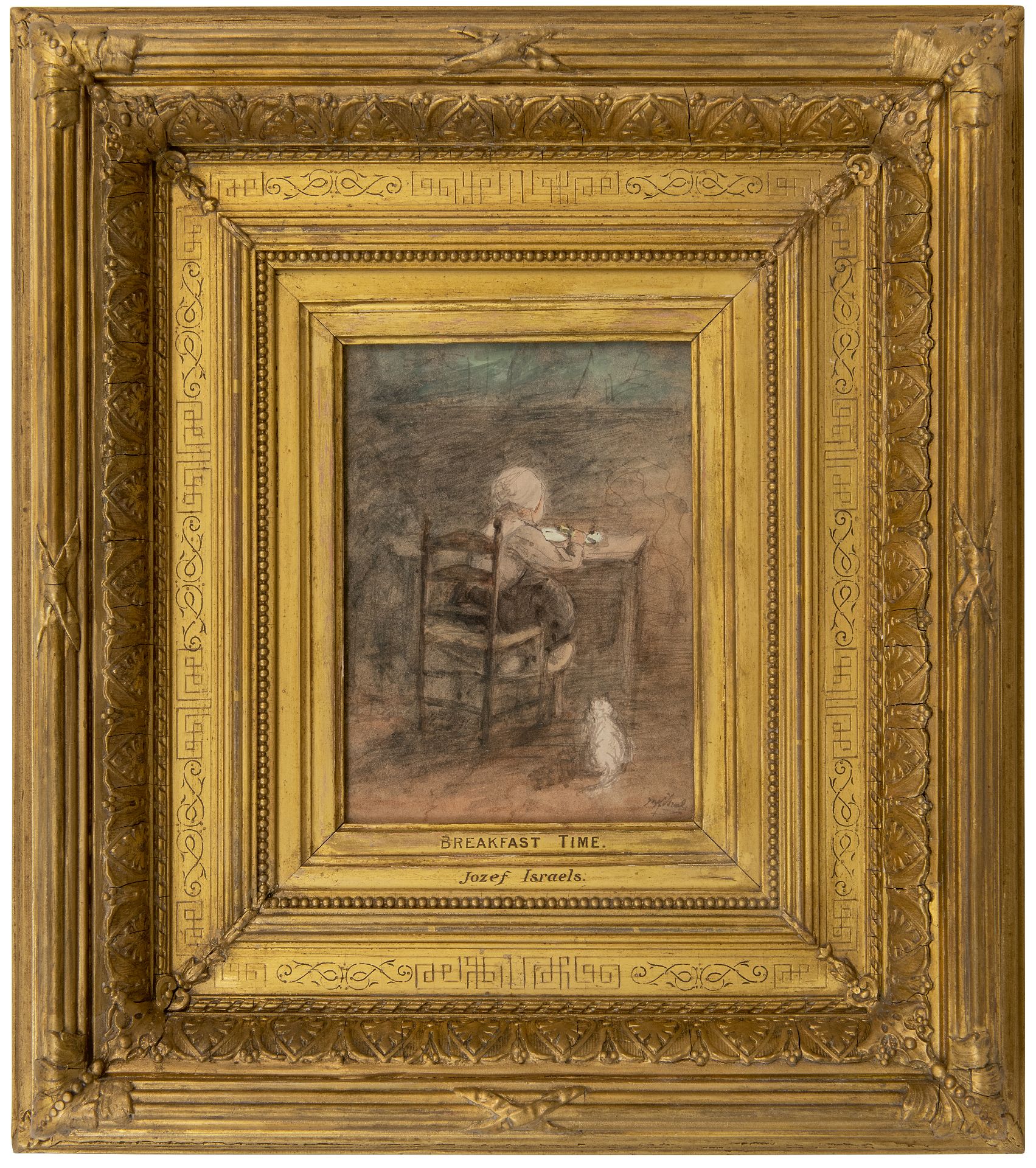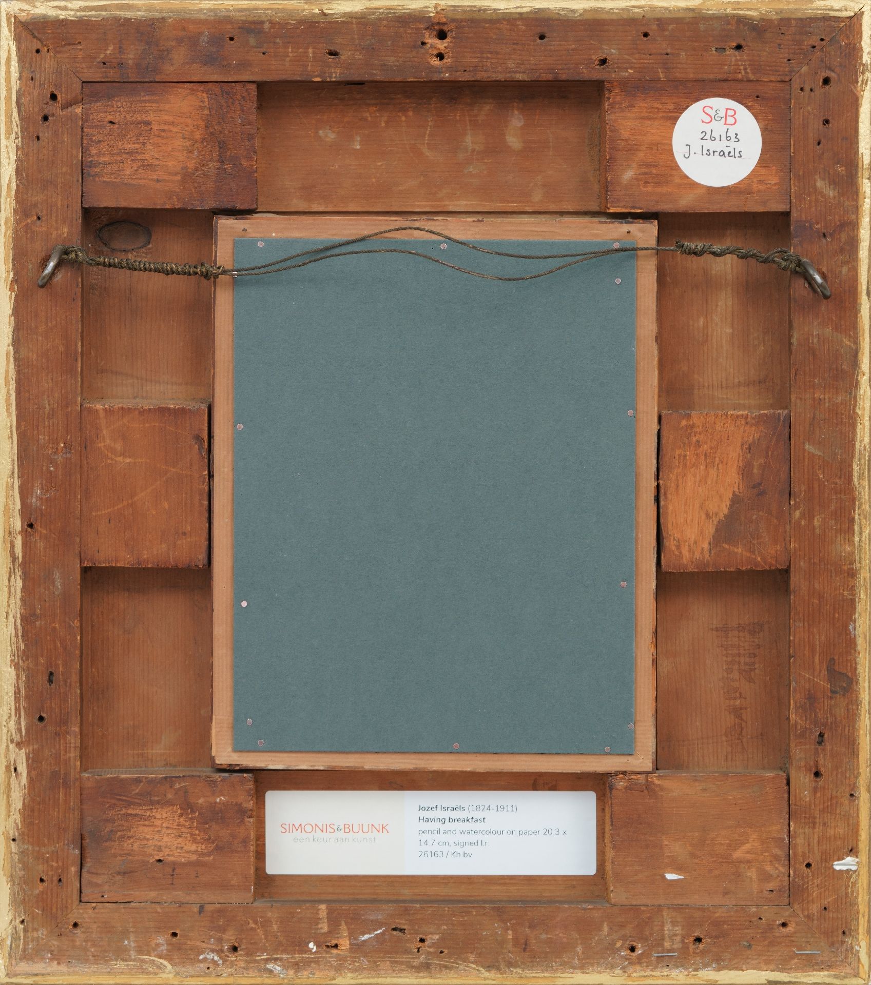 Jozef Israëls kunstwerk • aquarel • tekening • voorheen te koop Aan het ontbijt