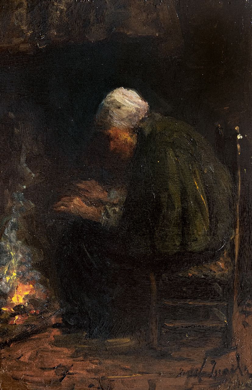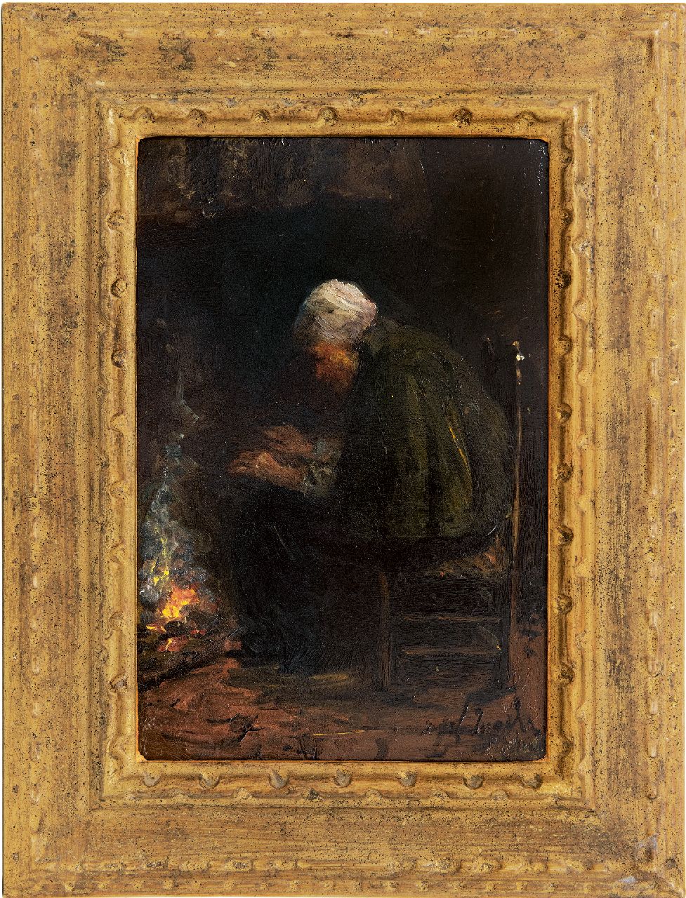 Jozef Israëls kunstwerk • schilderij • voorheen te koop Bij de haard