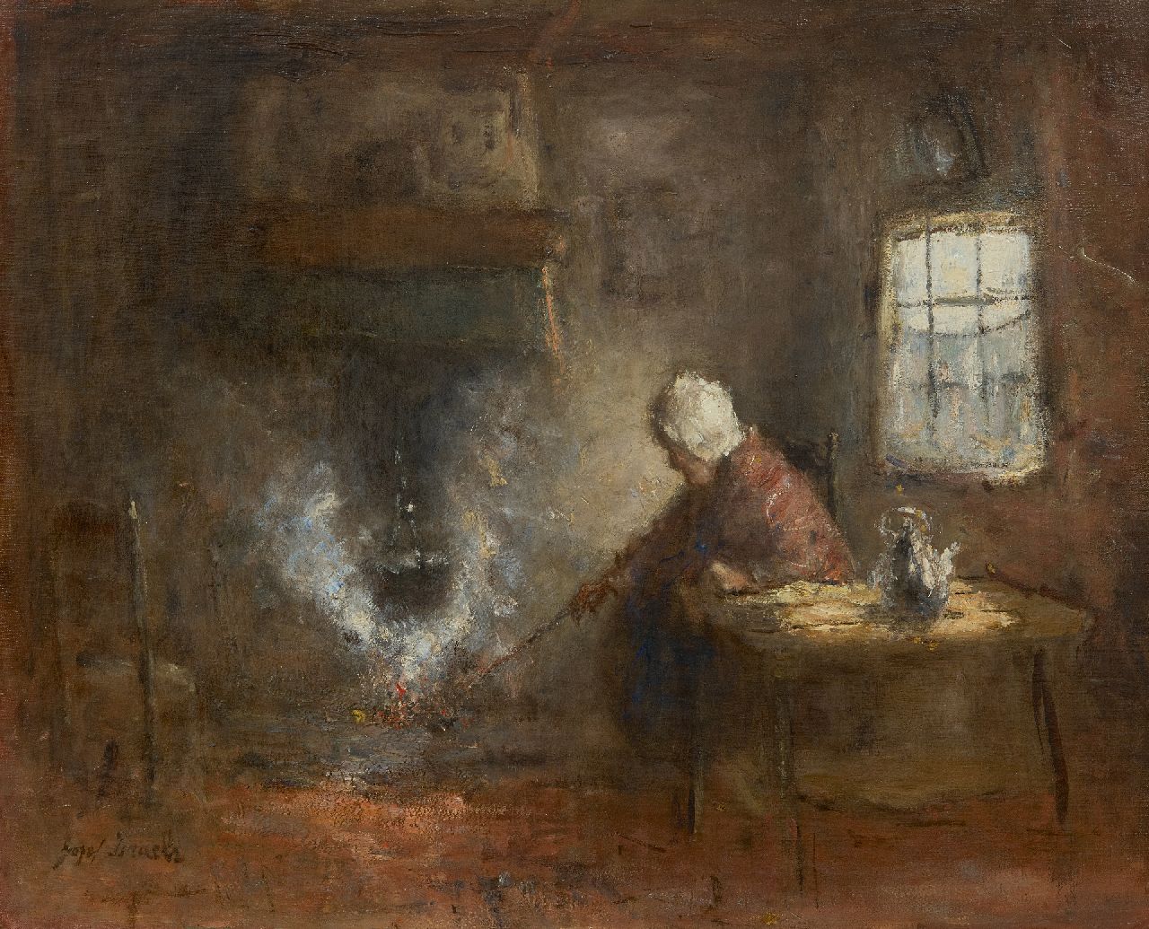 Jozef Israëls kunstwerk • schilderij • voorheen te koop Bij de kookpot