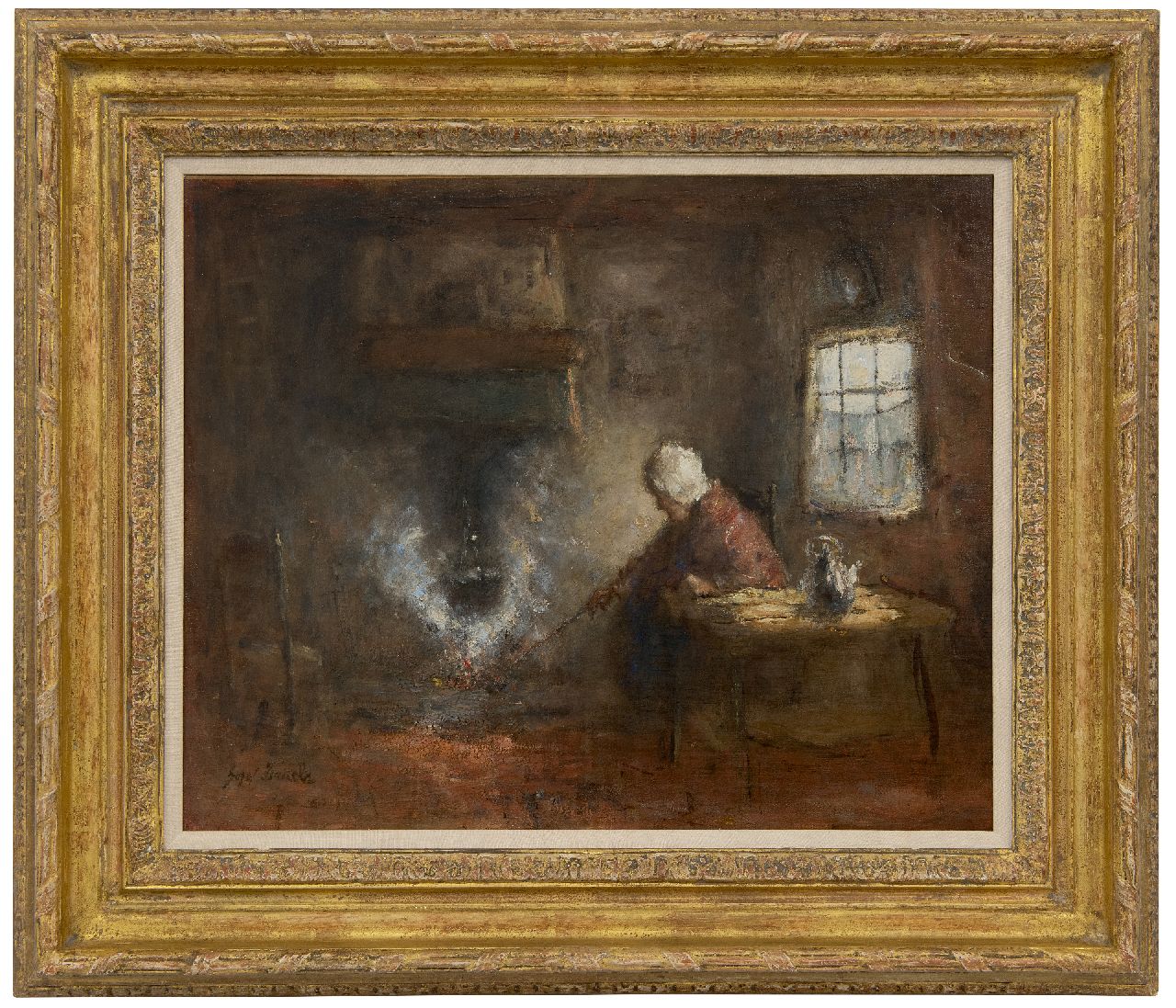 Jozef Israëls kunstwerk • schilderij • voorheen te koop Bij de kookpot