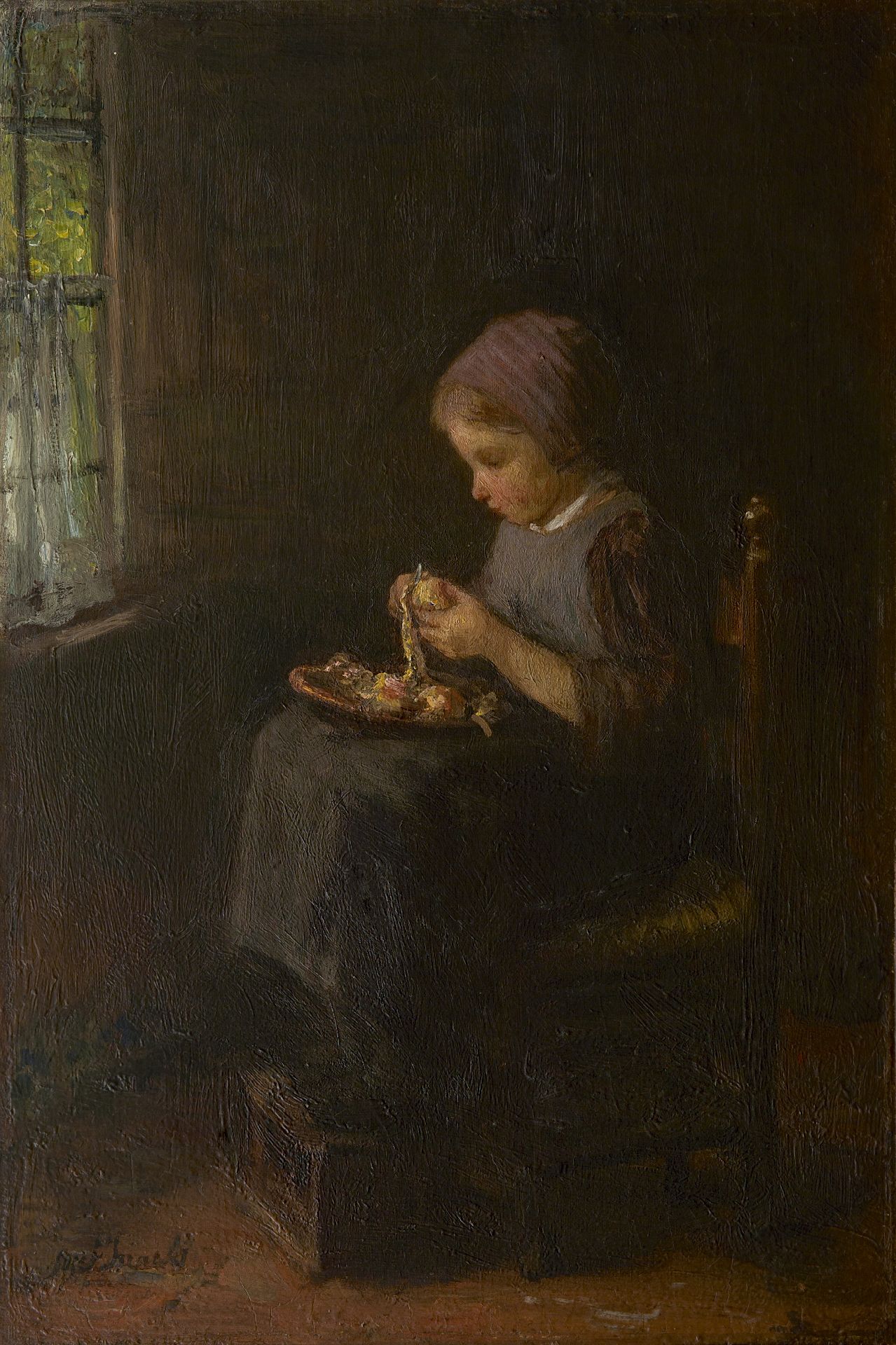 Jozef Israëls kunstwerk • schilderij • voorheen te koop Het aardappelschilstertje
