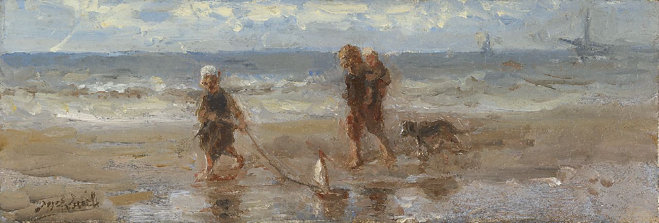 Israëls J.  | Jozef Israëls, Kinderen der zee, olieverf op paneel 12,9 x 37,6 cm, gesigneerd linksonder