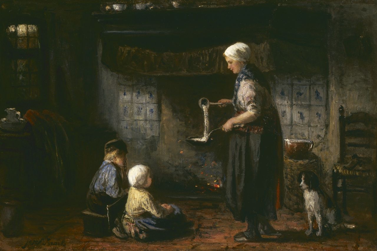 Jozef Israëls kunstwerk • schilderij • voorheen te koop Pannenkoeken bakken