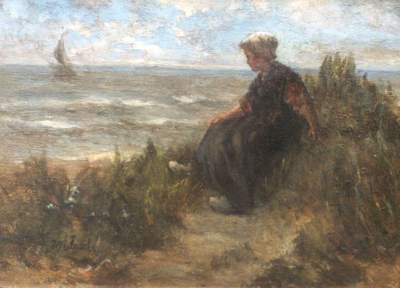 Jozef Israëls kunstwerk • schilderij • voorheen te koop Vissersmeisje op een duintop