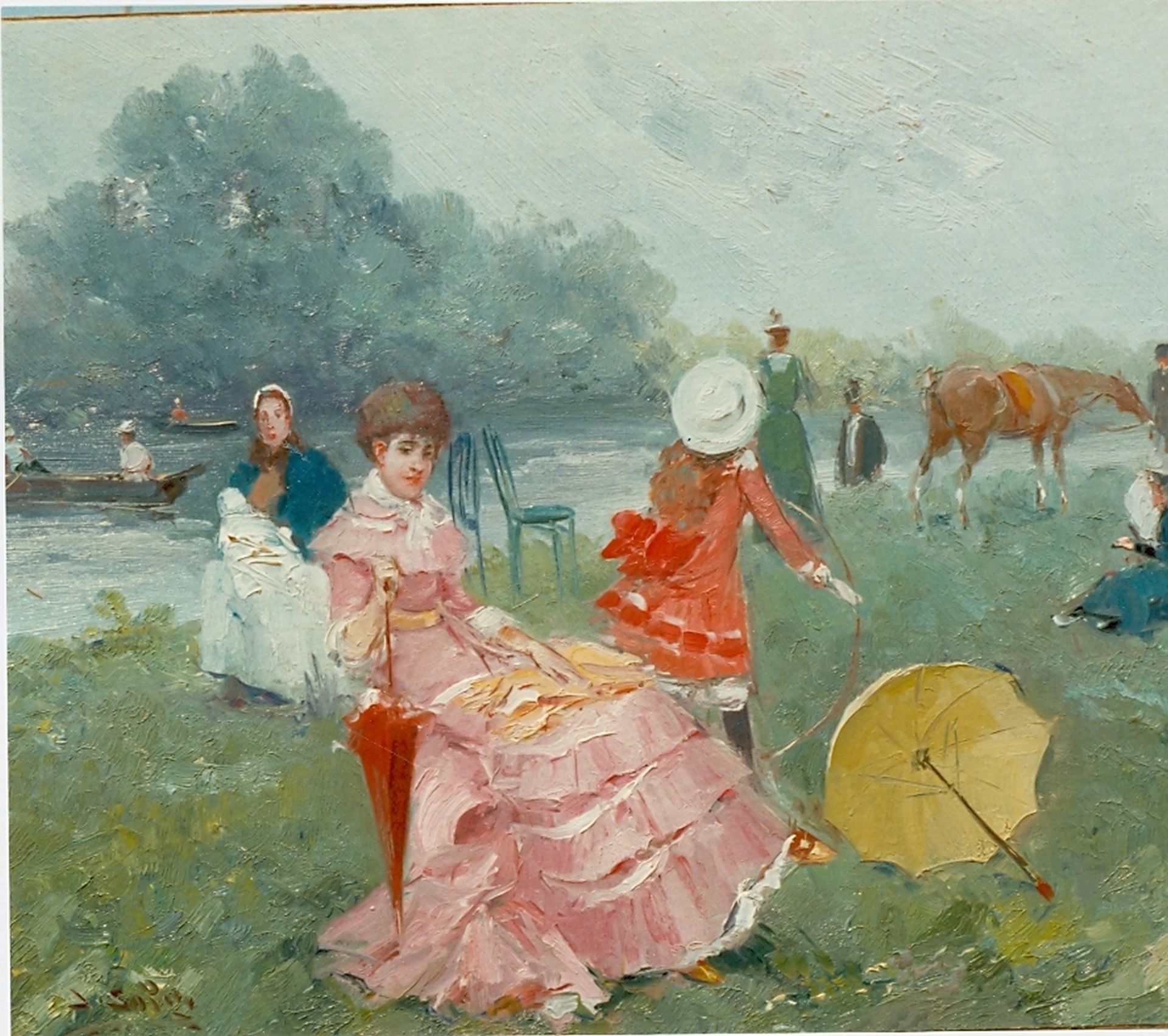 Juan Soler kunstwerk • schilderij • voorheen te koop Langs de waterkant