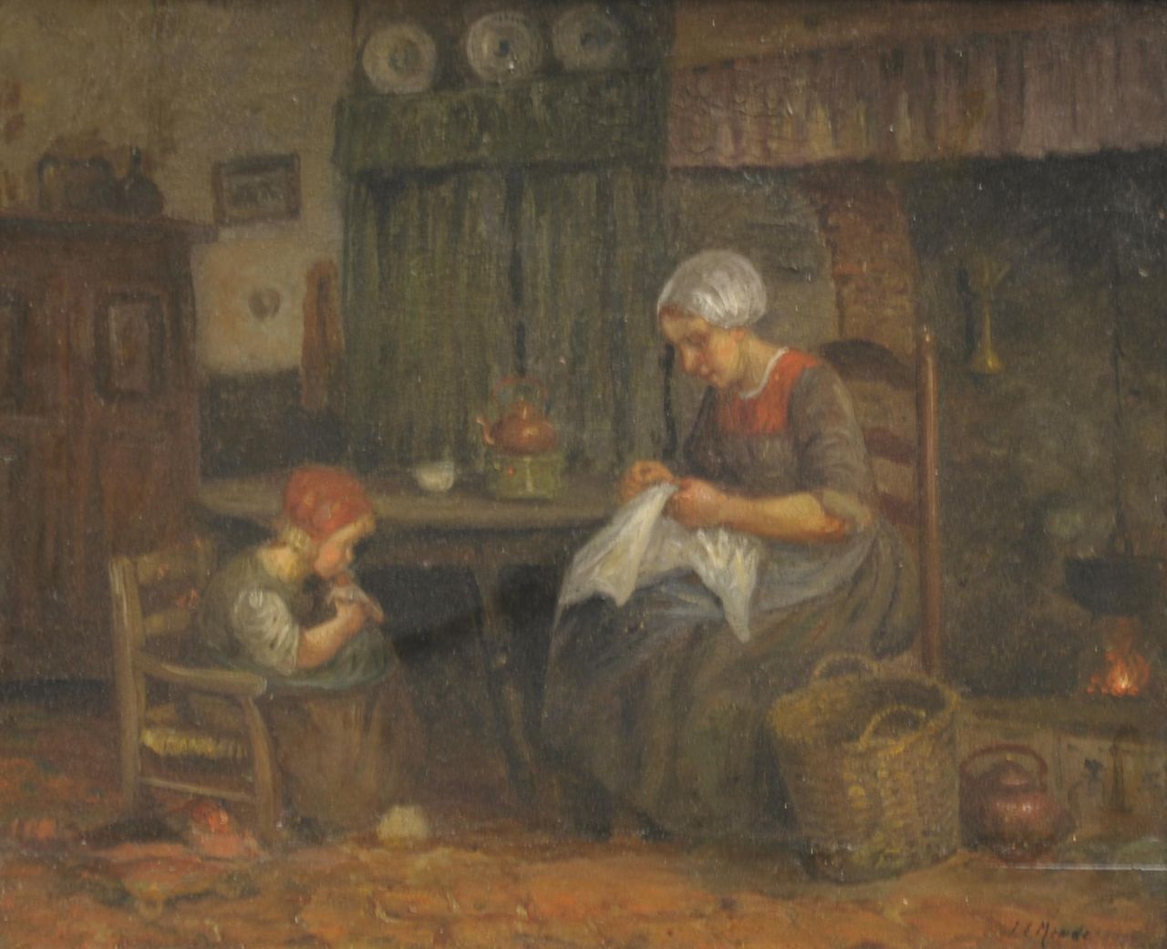 Jules Eduard Mendes kunstwerk • schilderij • voorheen te koop Handwerkende vrouw