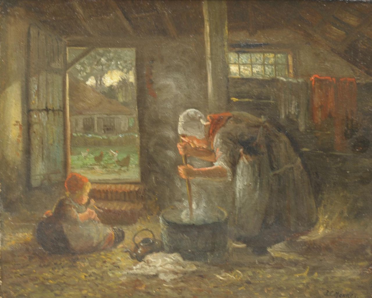 Jules Eduard Mendes kunstwerk • schilderij • voorheen te koop Vrouw roerend in pot