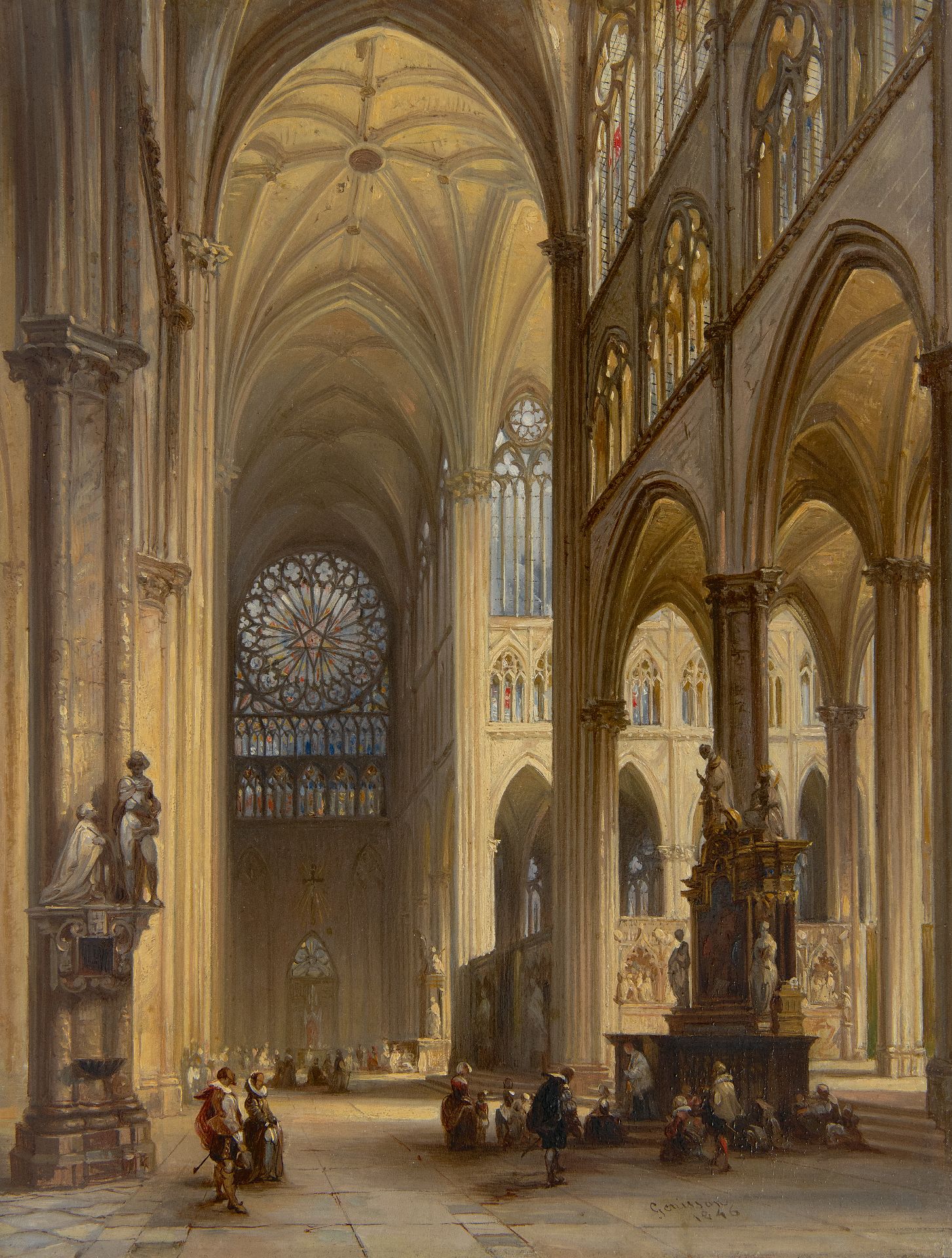 Jules Victor Genisson kunstwerk • schilderij • voorheen te koop Interieur van de kathedraal van Amiens