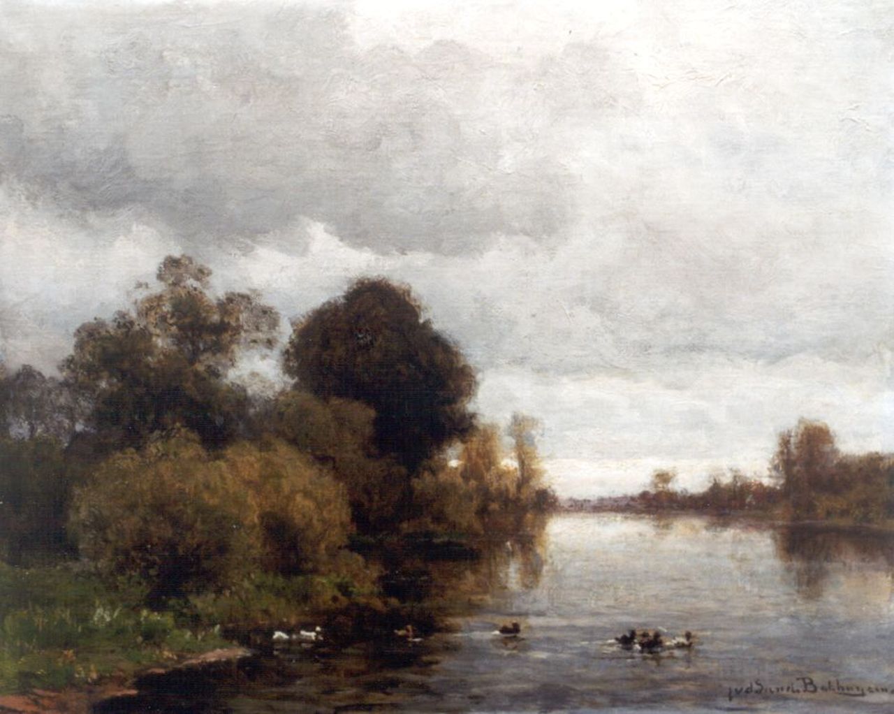Julius Jacobus van de Sande Bakhuyzen kunstwerk • schilderij • voorheen te koop Verstild riviergezicht