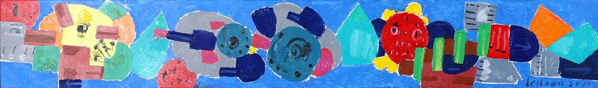 olieverf op doek 29,0 x 200,0 cm, gesigneerd rechtsonder en gedateerd 28-08-2003