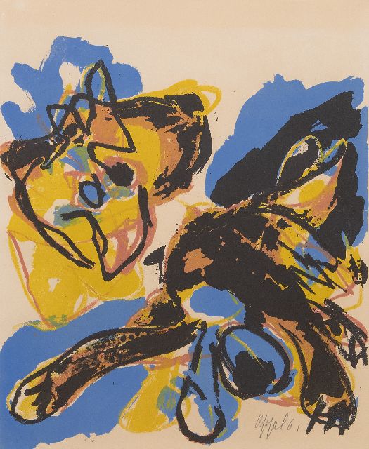 Karel Appel was één van de hoofdfiguren van de naoorlogse CoBrA-beweging (1948-1951). Zijn werk wordt gezien als representatief voor de idealen van deze groep schilders, die in hun werk uitdrukking gaven aan hun verzet tegen de traditionele schilderkunst met haar regels en taboes. In zijn CoBrA-tijd schilderde Appel fabeldieren en fantasiewezens. Na 1951 werd zijn schildertrant steeds heftiger, totdat lijn en kleurvlak samensmolten tot één turbulente, expressieve verfmassa.