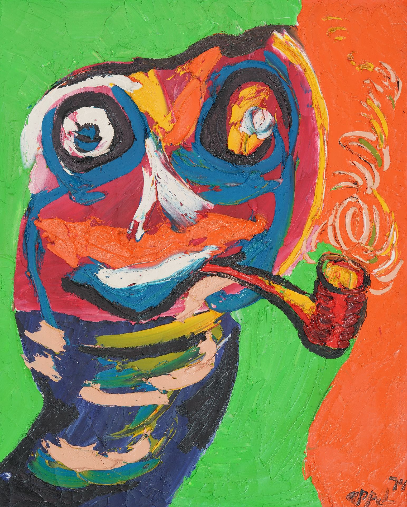 Karel Appel kunstwerk • schilderij • voorheen te koop Femme à la pipe (ode aan Van Gogh met pijp)
