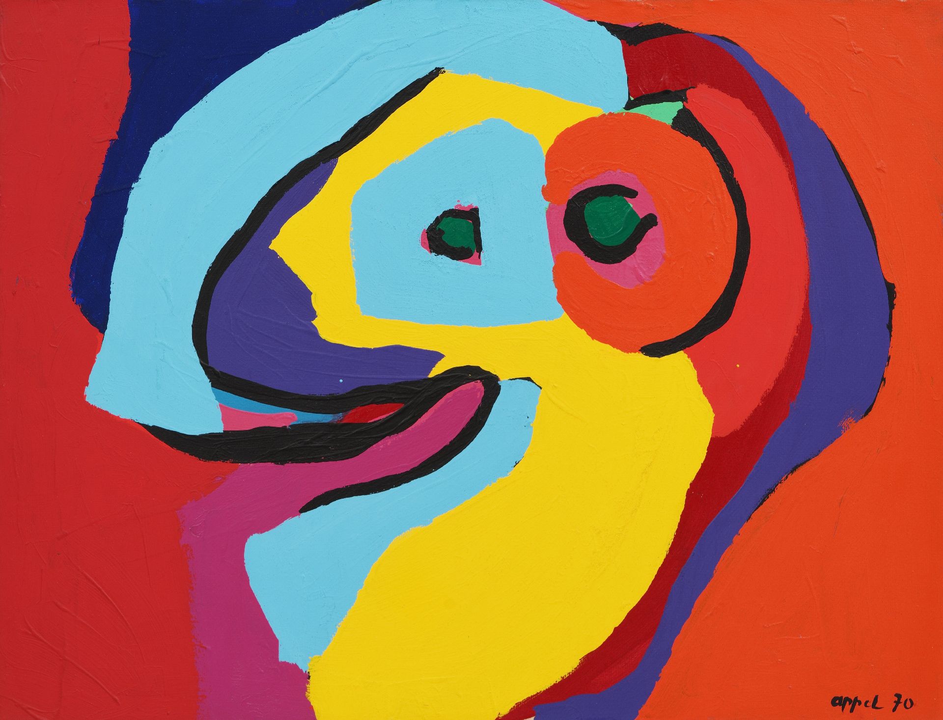 Karel Appel was één van de hoofdfiguren van de naoorlogse CoBrA-beweging (1948-1951). Zijn werk wordt gezien als representatief voor de idealen van deze groep schilders, die in hun werk uitdrukking gaven aan hun verzet tegen de traditionele schilderkunst met haar regels en taboes. In zijn CoBrA-tijd schilderde Appel fabeldieren en fantasiewezens. Na 1951 werd zijn schildertrant steeds heftiger, totdat lijn en kleurvlak samensmolten tot één turbulente, expressieve verfmassa.