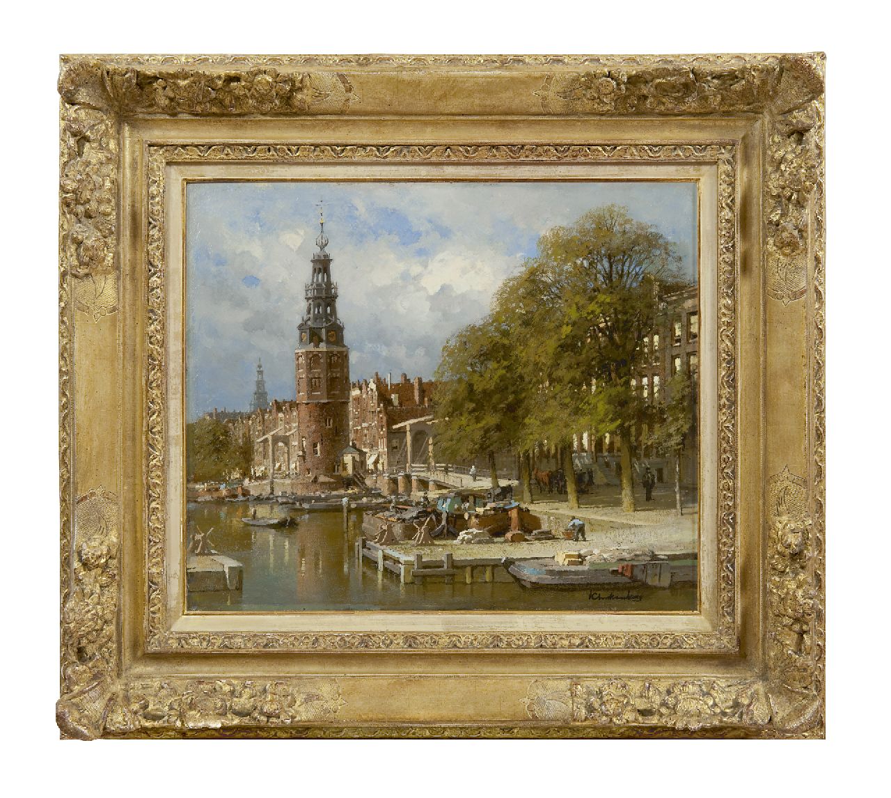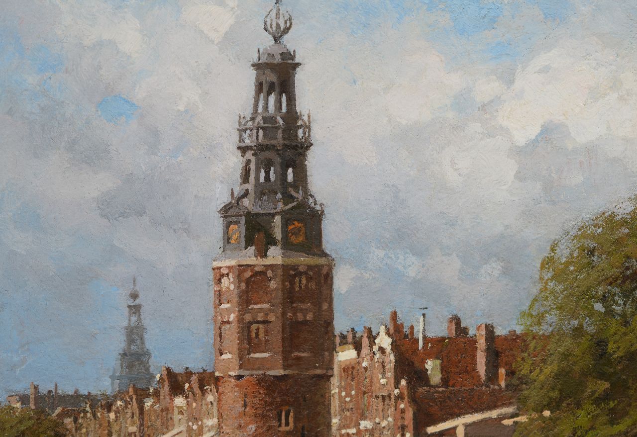 Karel Klinkenberg kunstwerk • schilderij • te koop De Montelbaanstoren bij de Kalkmarktsluis in Amsterdam