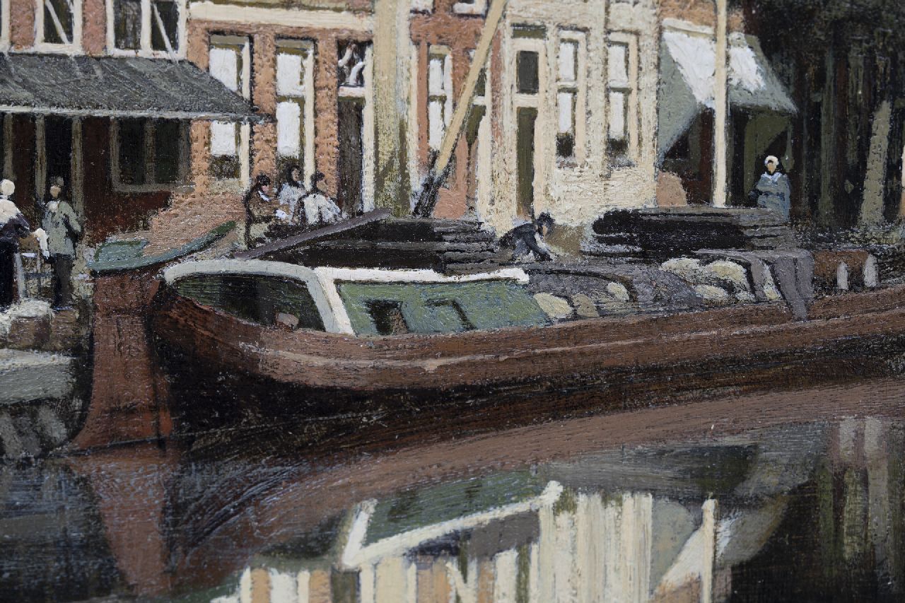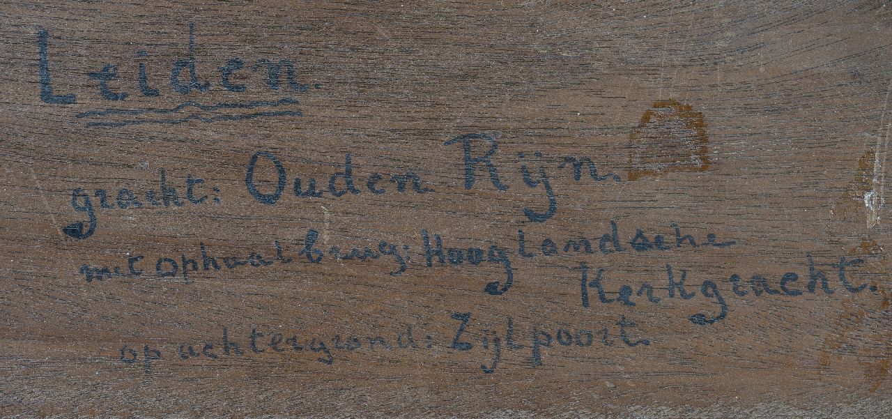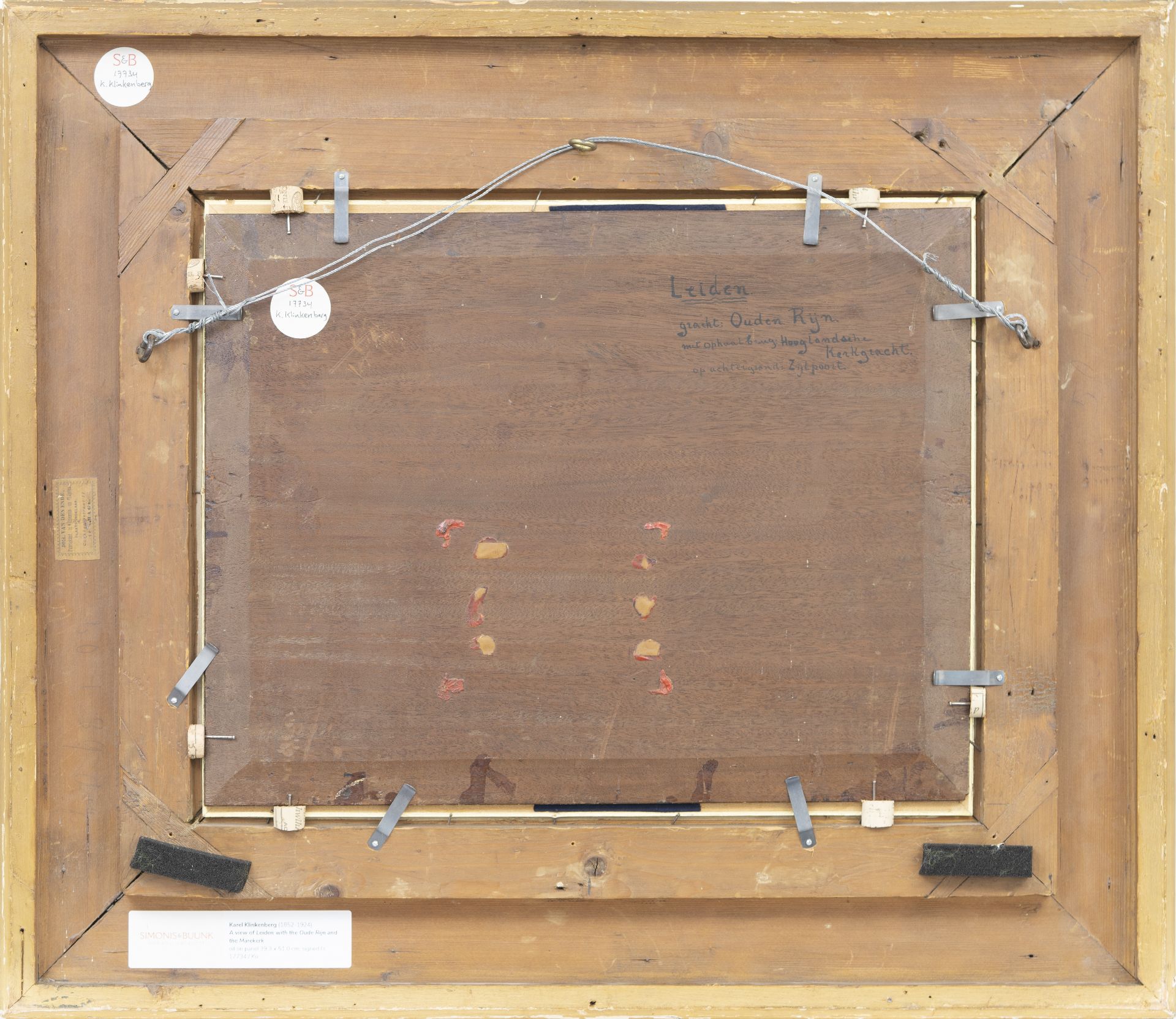 Karel Klinkenberg kunstwerk • schilderij • te koop De Oude Rijn te Leiden met de koepel van de Marekerk