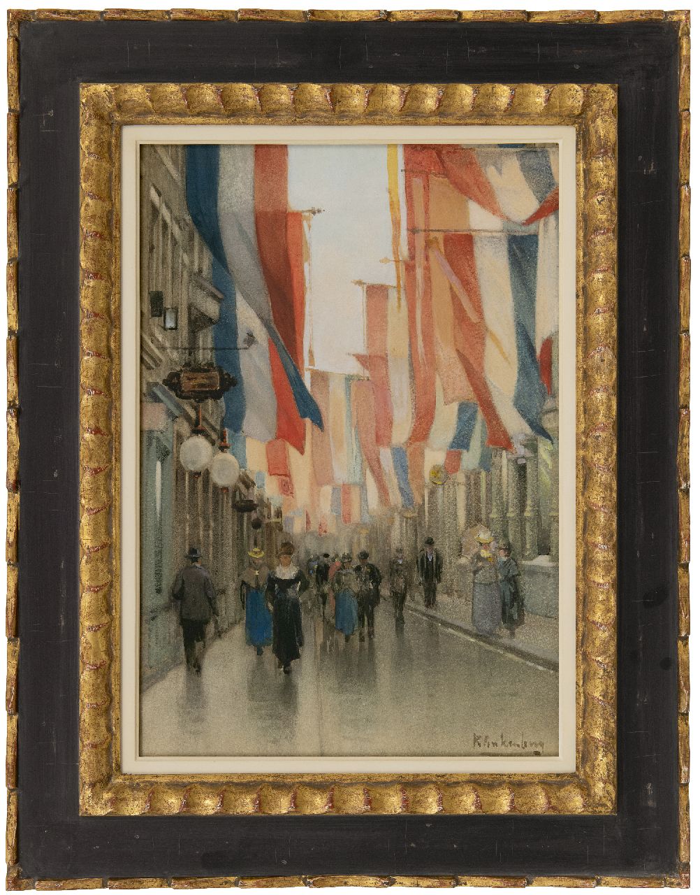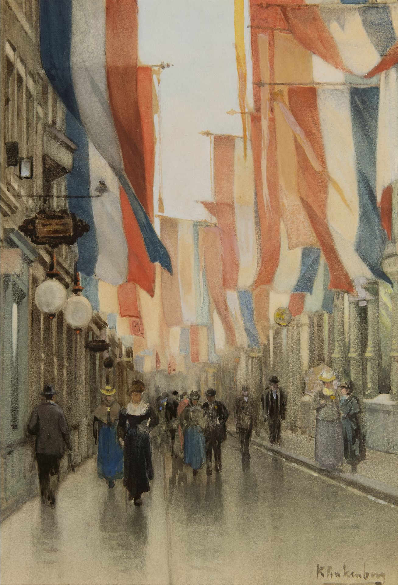 Karel Klinkenberg kunstwerk • aquarel • tekening • te koop De Spuistraat in Den Haag op Koninginnedag