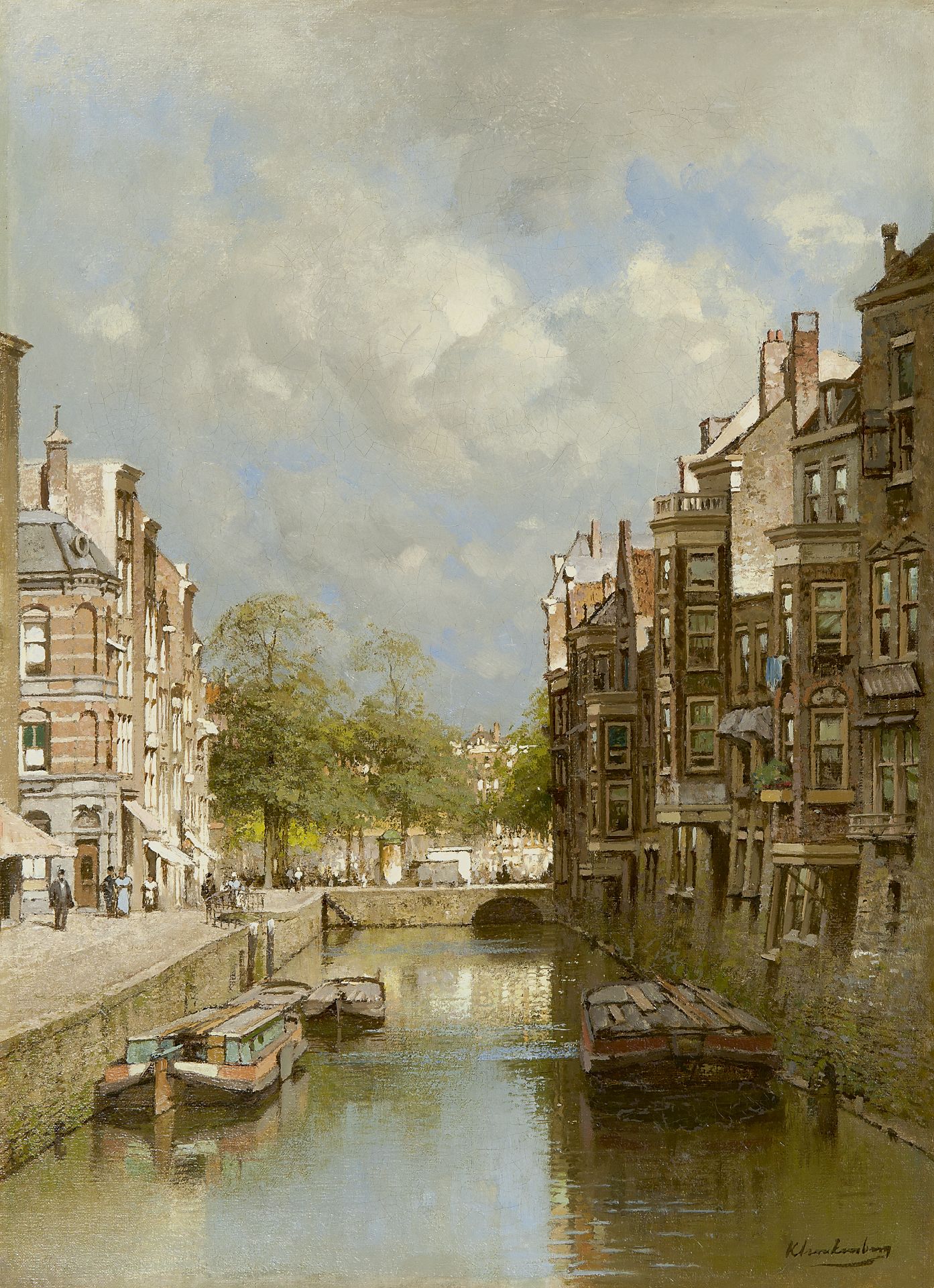 J.C.K. Klinkenberg was gespecialiseerd in het historische stadsgezicht, vaak zonovergoten, de gevels spiegelend in het water van een gracht of binnenhaven. Tijdgenoten bewonderden het zonlichteffect in zijn schilderijen: een sterk, schitterend licht, dat het witte zandsteen en de rode baksteen van de Oudhollandse gevels sterk deed oplichten. Talloze Hollandse steden zijn door Klinkenberg vereeuwigd. De topografische herkenbaarheid en de stijl die het midden houdt tussen romantiek en impressionisme verlenen hem een waardige plaats in de rijke traditie van de Hollandse architectuurschilderkunst.