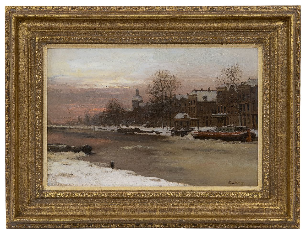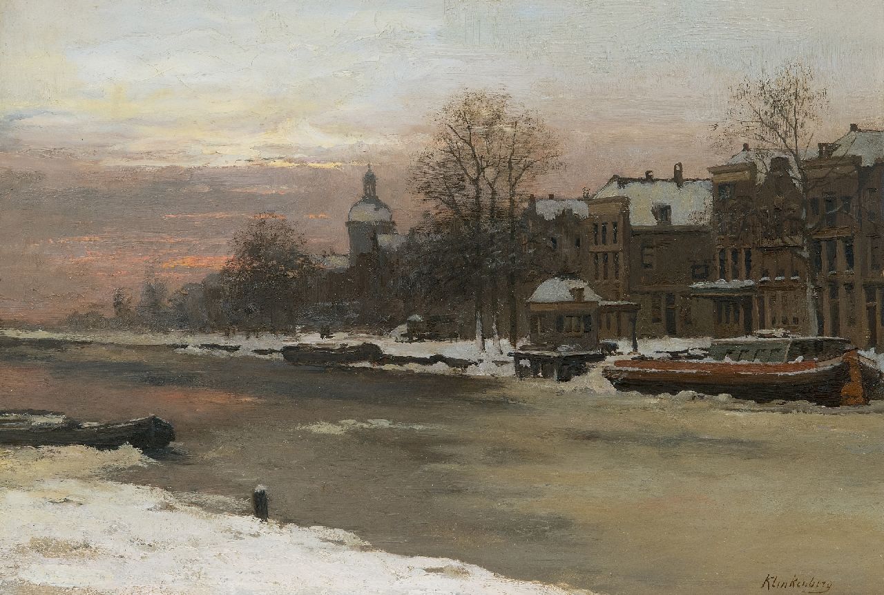 Karel Klinkenberg kunstwerk • schilderij • te koop Hollandse gracht in de winter