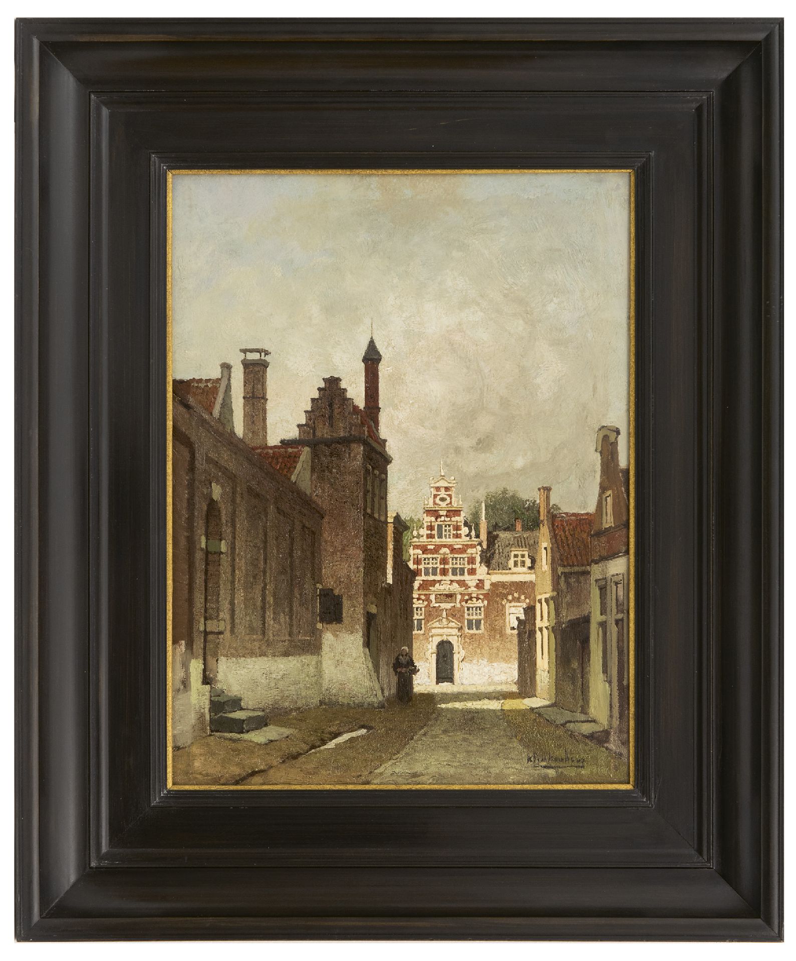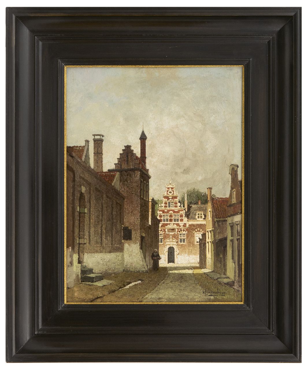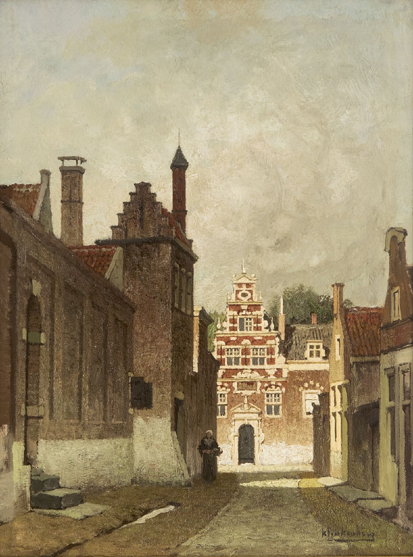 Karel Klinkenberg kunstwerk • schilderij • te koop Zomers straatje (mogelijk Delft)